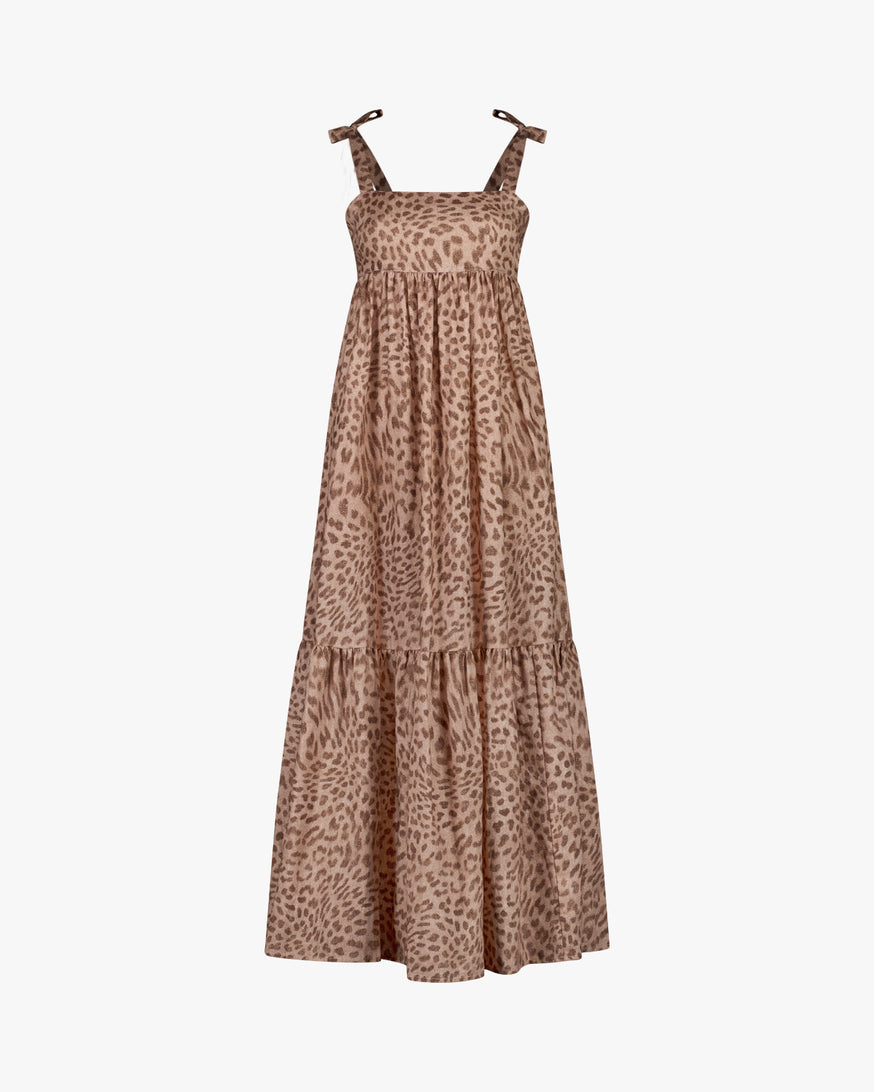 If you can't get to the Amalfi Coast, our Positano dress will make you feel like you're there in spirit, with thin straps and flowy tiered skirt. A beautiful breezy style in our gorgeous bold Leopard print fabric!