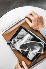 The transparent exterior turns ordinary H20 into a mesmerising and playful work of art, that also encourages you to increase your daily water intake. Add a vitamin boost to every sip by placing a few blueberries or strawberries inside. Your Slim memobottle is paired with a stainless-steel lid and all encased inside premium recycled packaging; a perfect gift for yourself or a loved one.