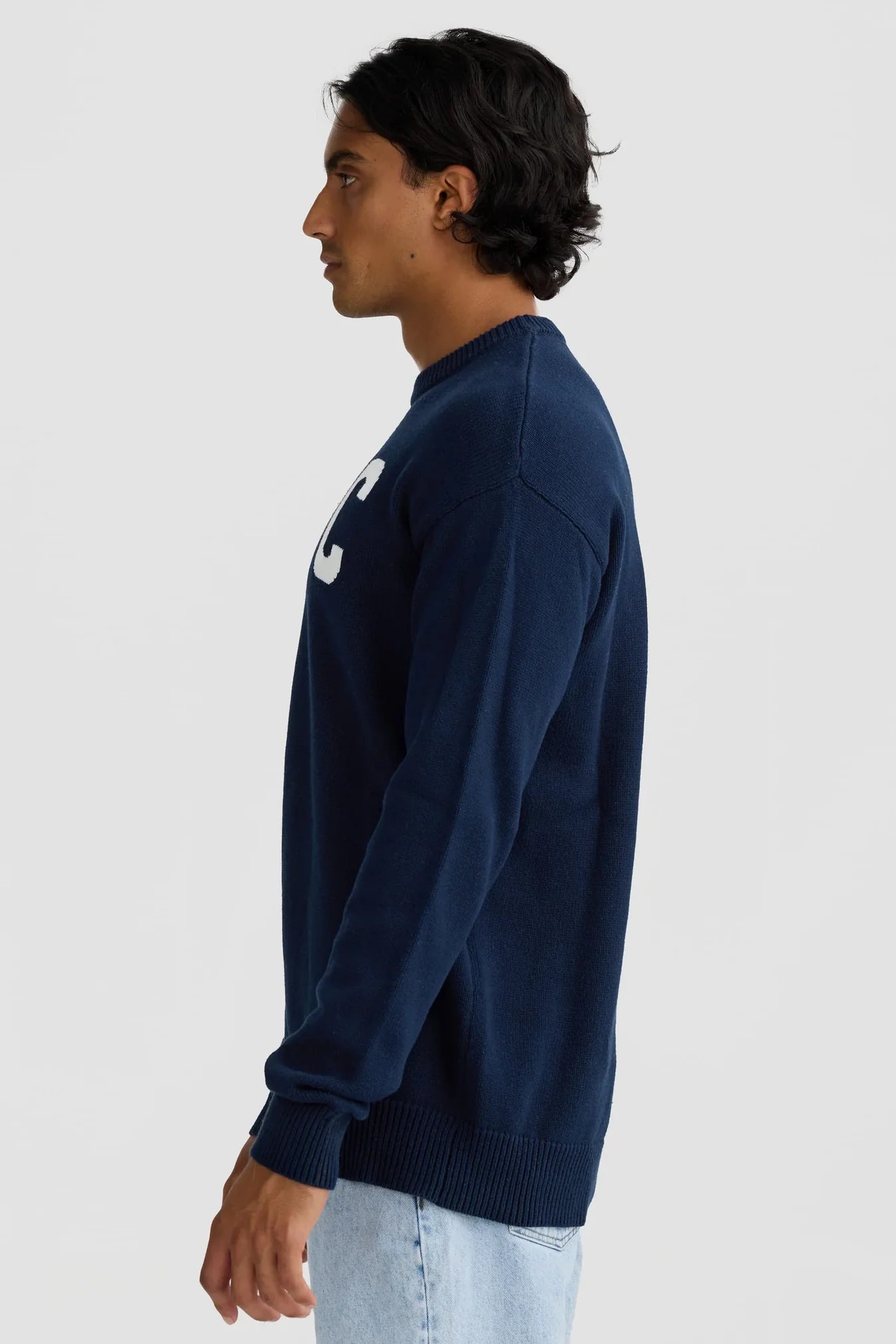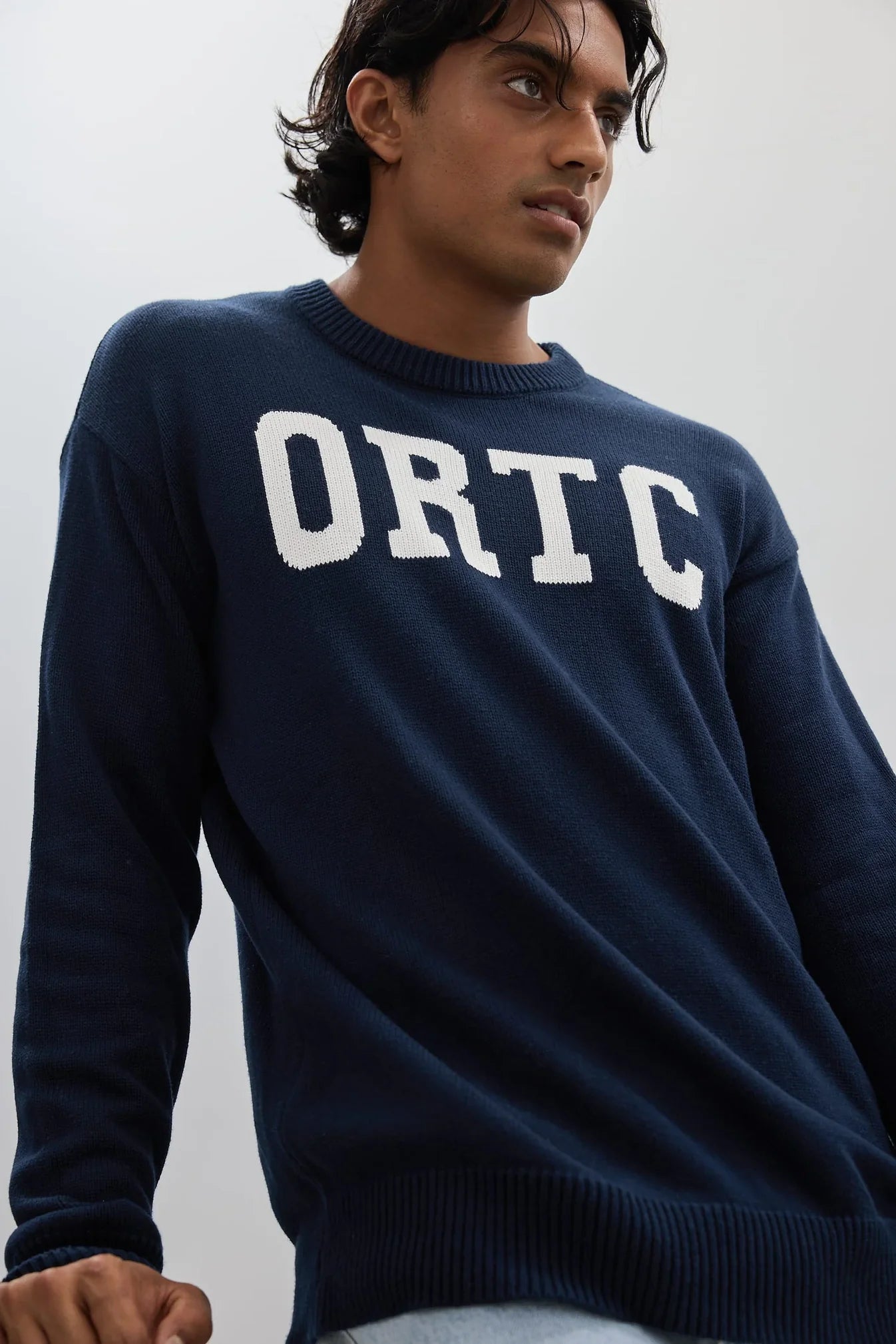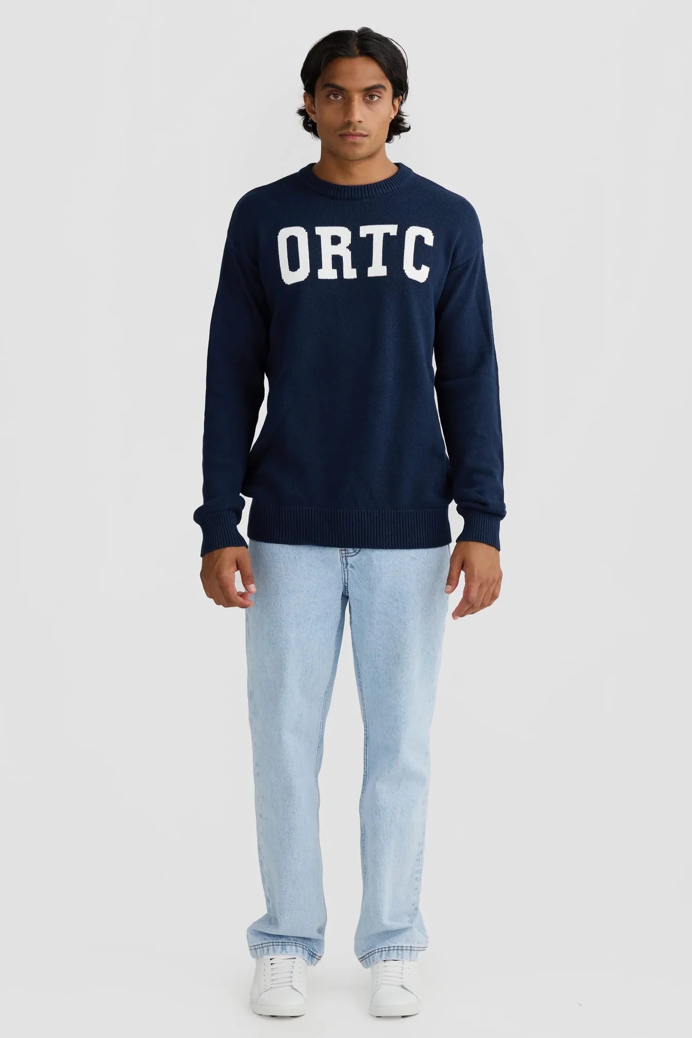 The Original Logo Knit Crew French Navy is a cold weather staple with a statement twist. Designed to keep you warm, this crewneck knit showcases ORTC woven letters on the chest, adding a distinctive touch to a classic essential.