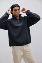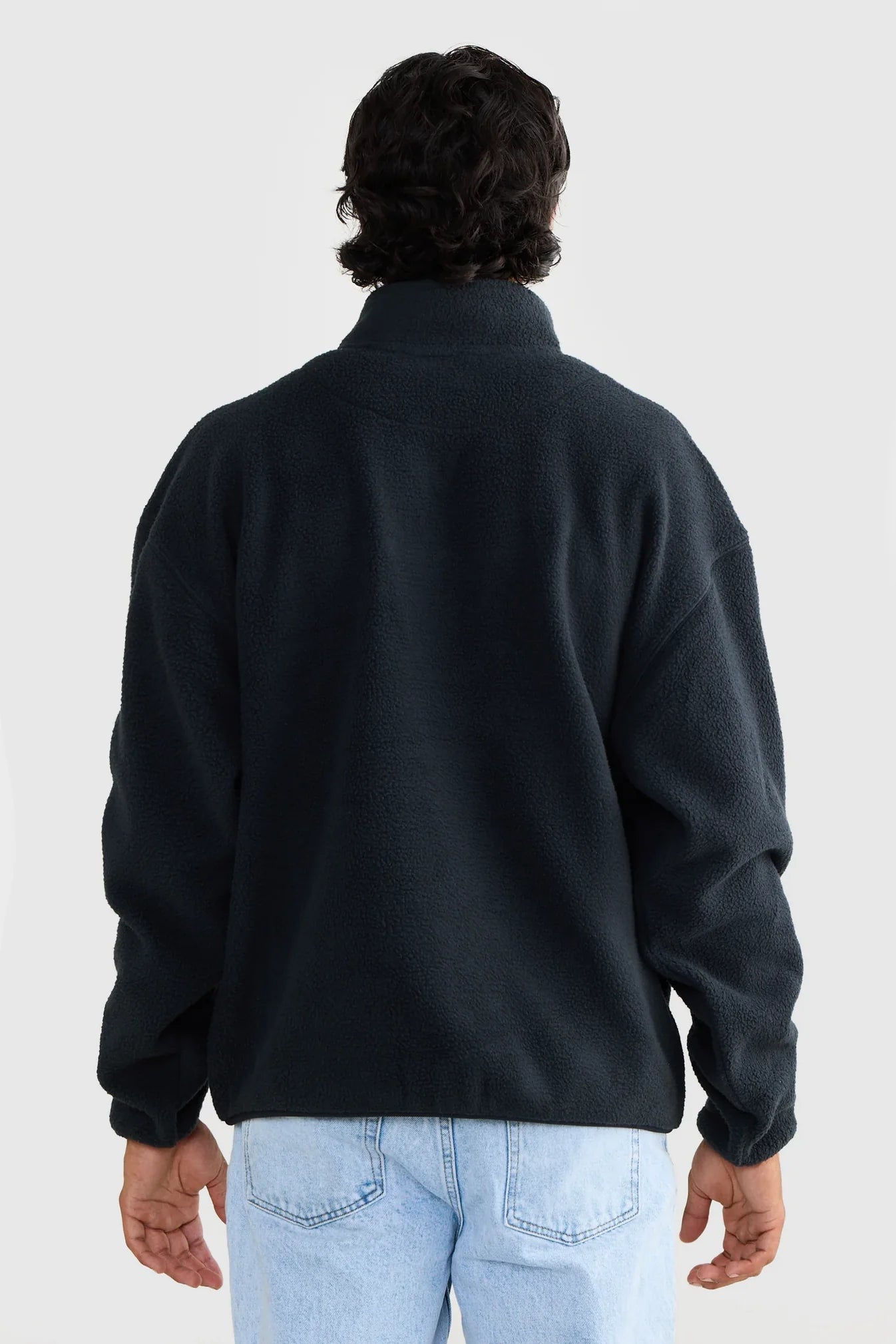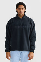 Unisex Sherpa Fleece Logo Quarter Zip Washed Black
