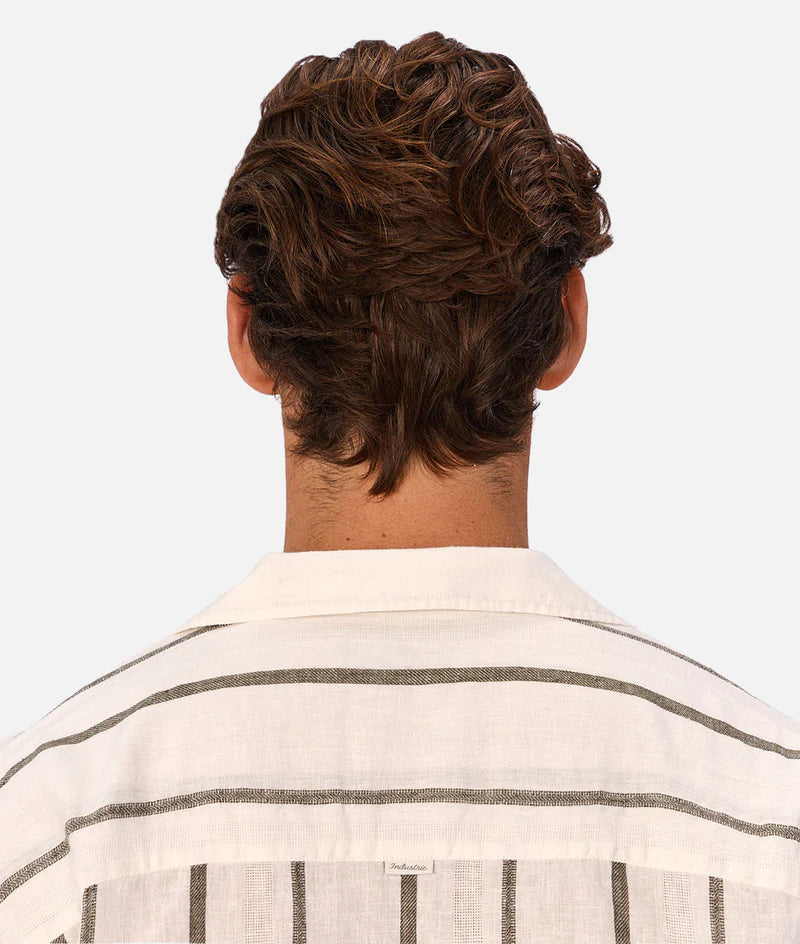 Breezy, fresh, and perfect for sunny days, The Mulholland Short Sleeve Shirt keeps things effortlessly cool. This shirt mixes neutral stripes with a subtle textured edge, adding a touch of personality to a classic camp-collar silhouette. Finished with a chest pocket and straight hem, it’s an easy throw-on for relaxed summer adventures.