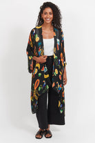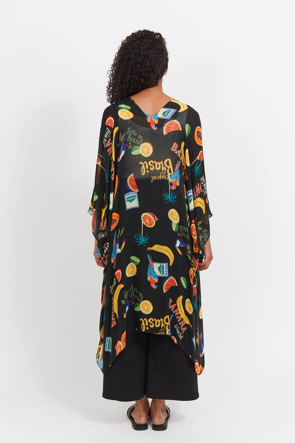 A light layer with a bold touch. The Cabana Cape is your go-to for easy sun coverage - whether thrown over swimwear or styled with everyday pieces. Featuring an open-front design, 3/4 length sleeves, side vents, and a flowing handkerchief hem, it adds movement without the bulk. Crafted in a semi-sheer, shell-inspired print, it pairs perfectly with our matching Cabana Swimsuits for a coordinated beach-to-lunch look.