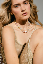 Introducing CALYPSO — a refreshing blend of soft sorbets and strong energy. Designed with natural Fluorite stones, this statement necklace brings calming intuition and confidence to every look. Pair it with sun-kissed skin and a golden hour glow.
