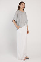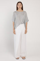 The Corsica Knit offers relaxed sophistication with a round neckline, elbow-length batwing sleeves, and a stepped hemline. A sheer shoulder detail on some versions adds a modern touch. Designed in a relaxed fit, it’s comfortable yet elevated. Perfect for effortless layering across seasons.