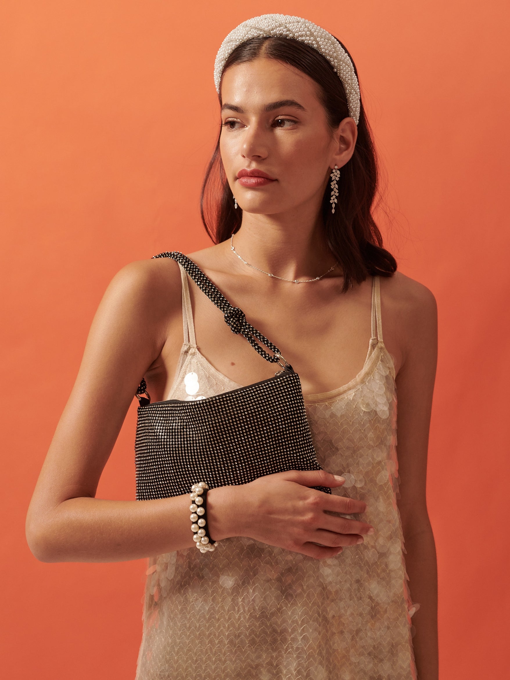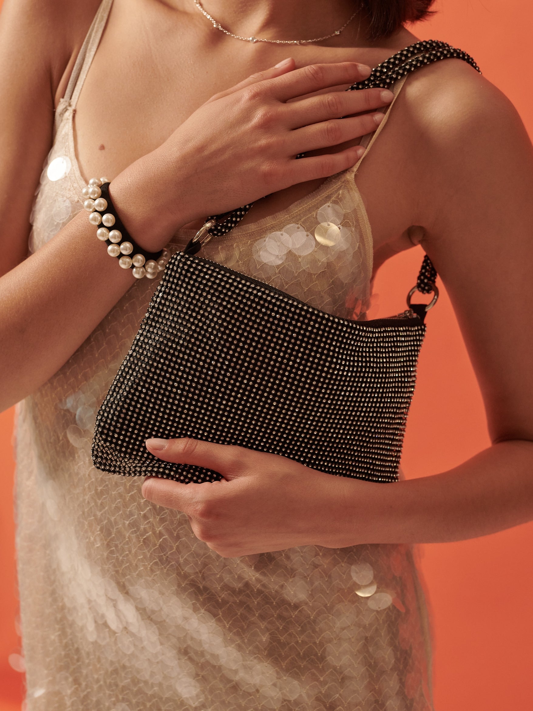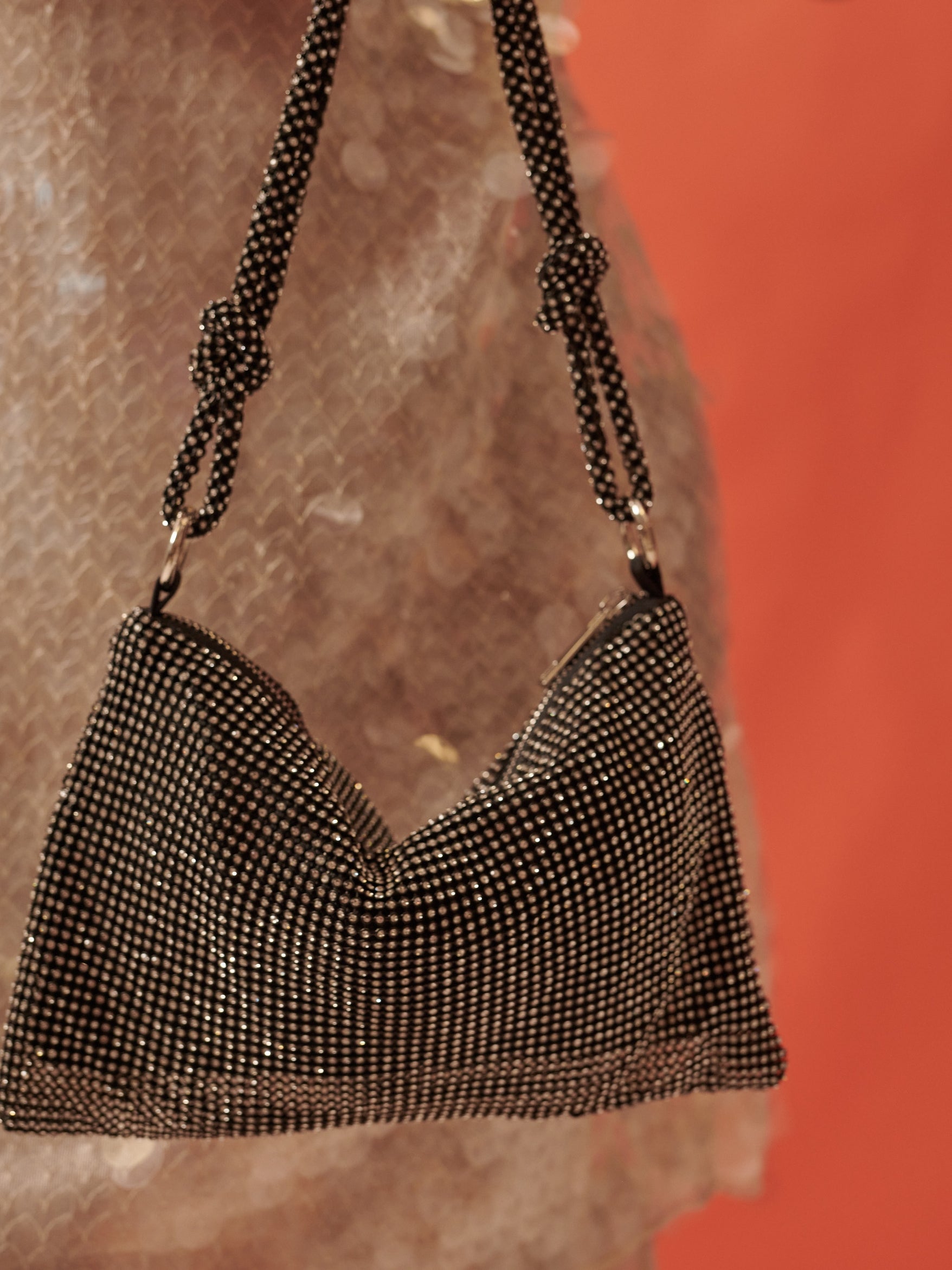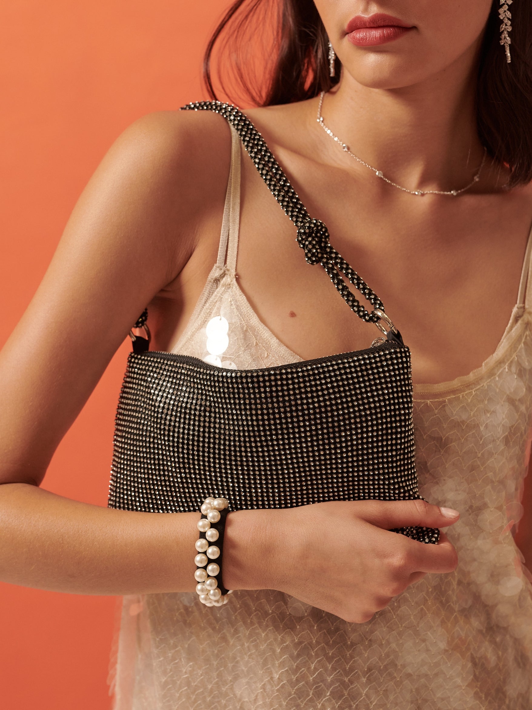 Your go-to bag for parties & night-outs this year end ✨ Features tonal fully lined interior, zipped closure and adjustable straps. Width: 22cm Height: 16cm