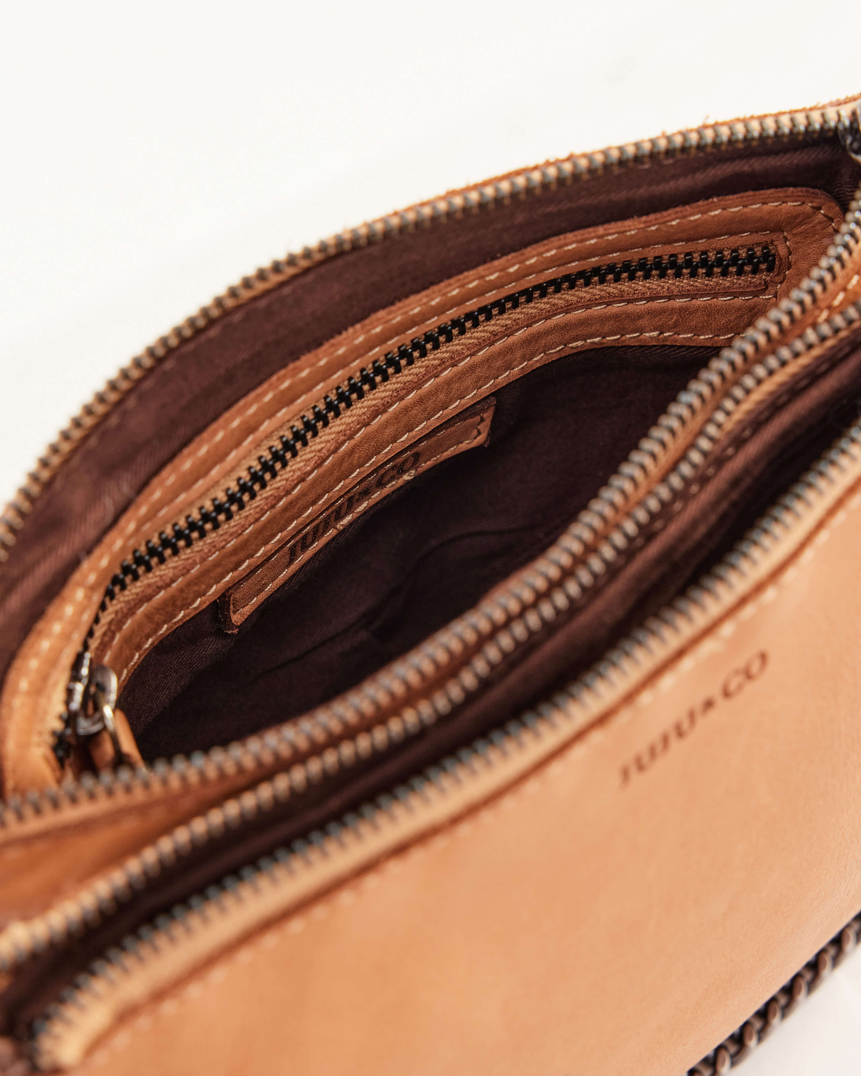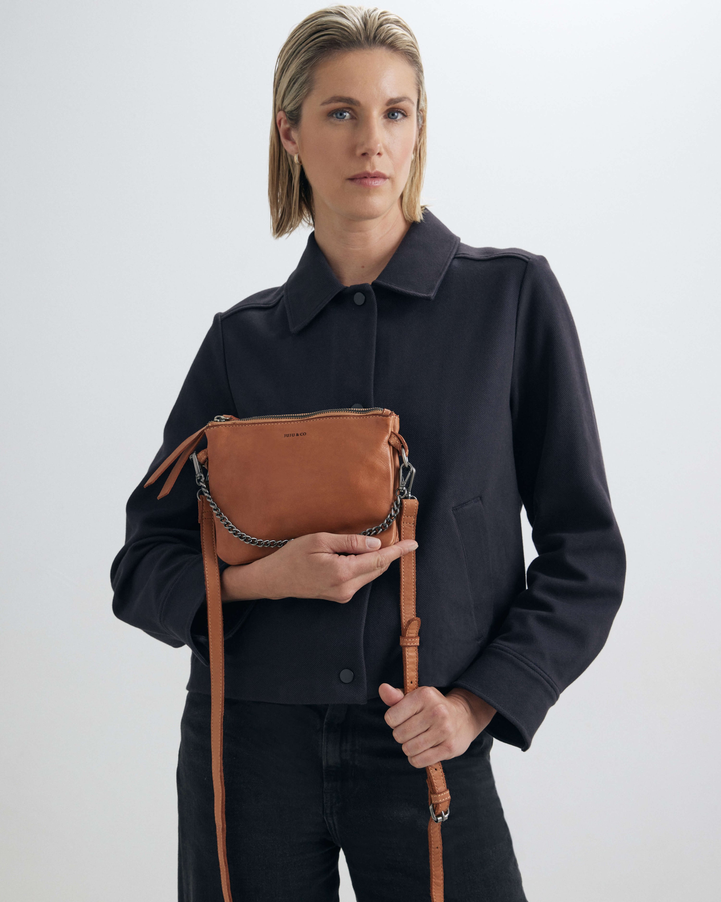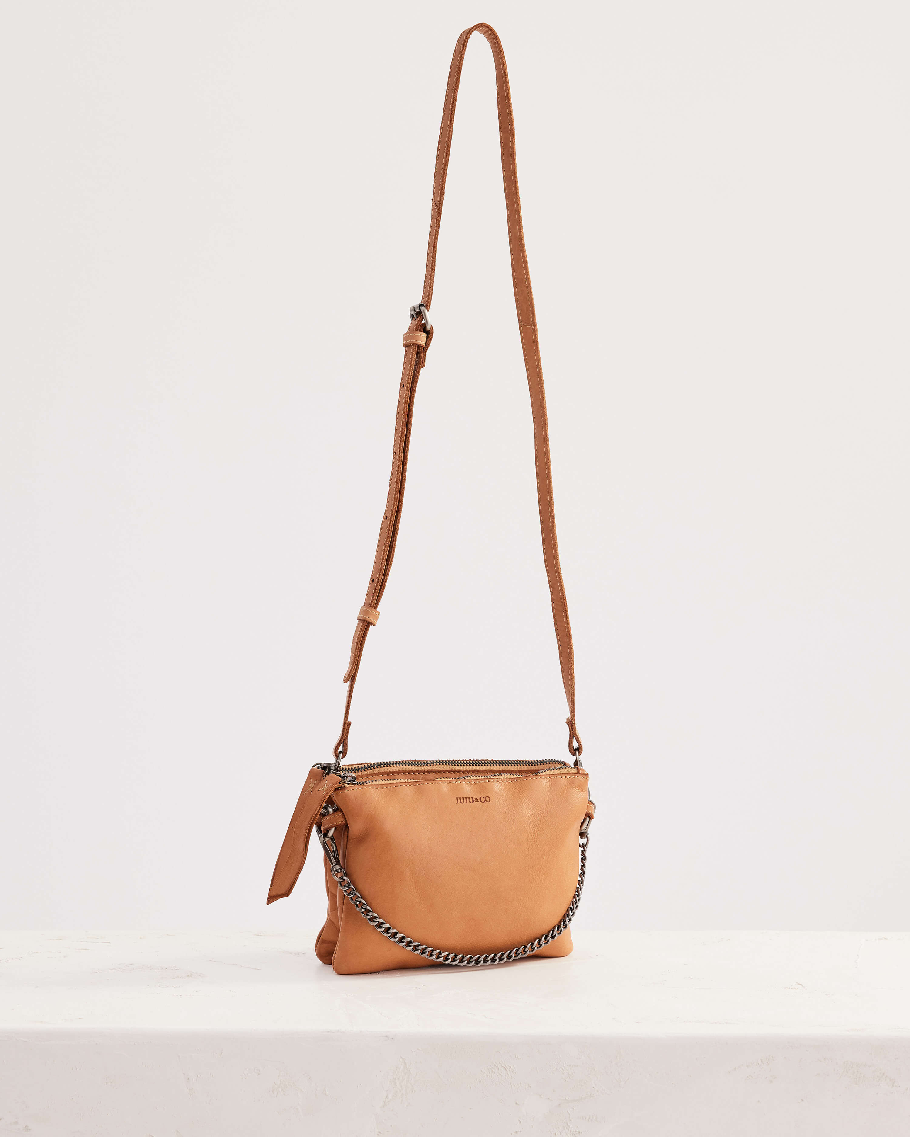 The Good Juju is a crossbody bag made from washed leather. With a detachable chain and double bodied construction, style for day or night with ease.