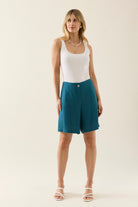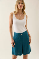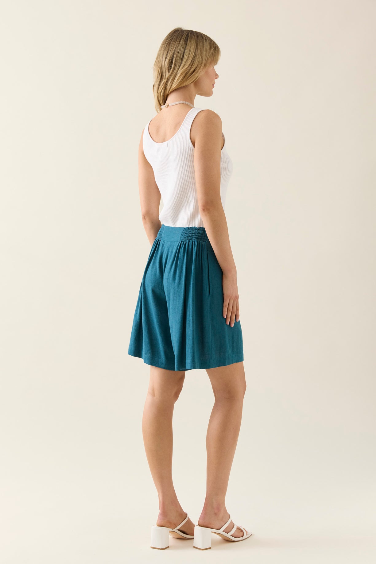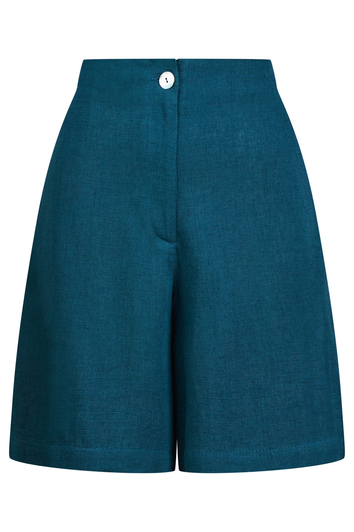 A flattering high-waist short in a breathable linen blend. Features a zip fly with shell button fastening, elasticated back waistband, and internal side pockets for practicality.
