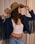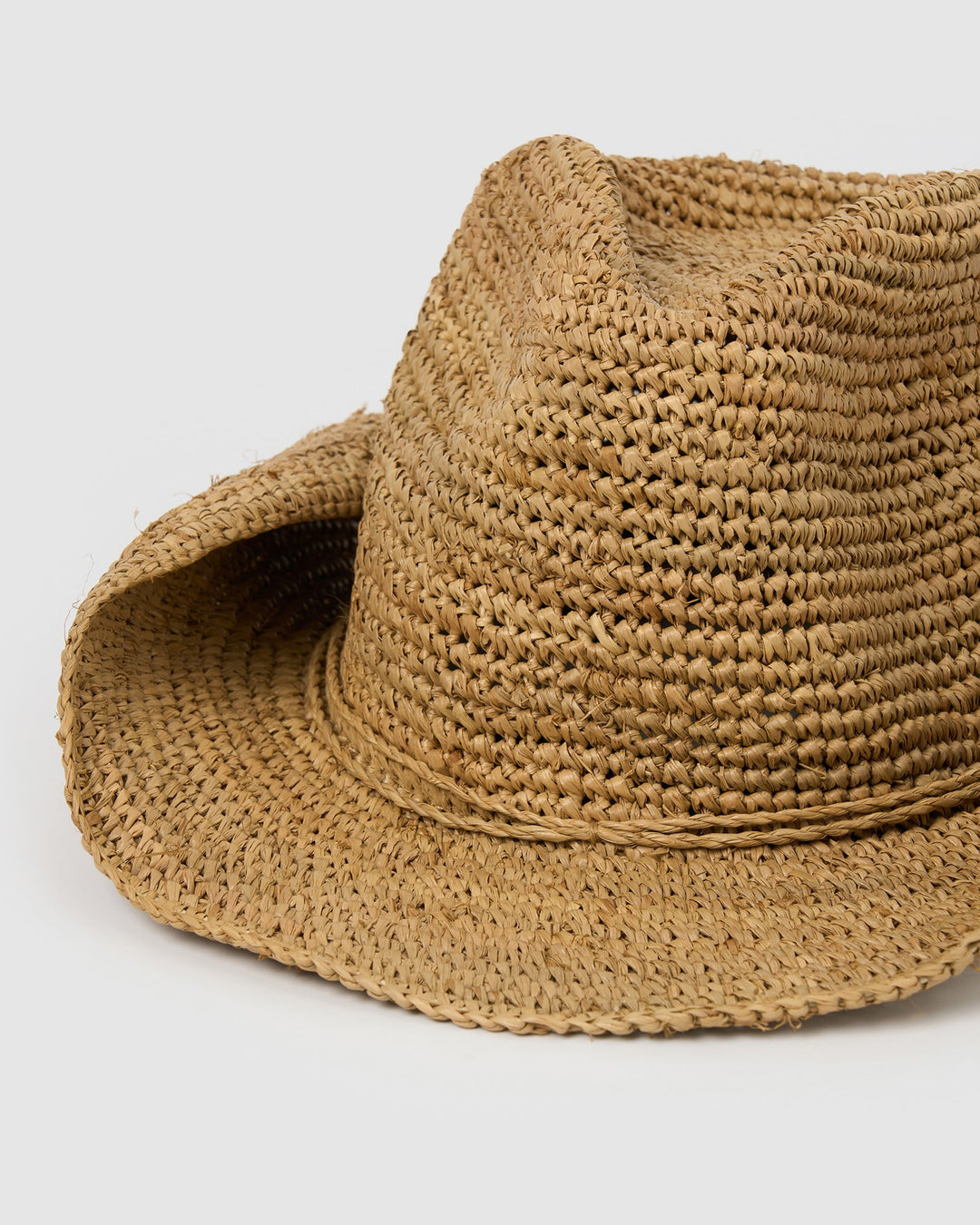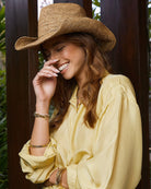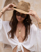 Channel laid-back cowboy style with the Jackson Sunhat, this season's must-have woven beauty. Perfect for beach days or Saturday afternoon drinks, this effortlessly cool piece will instantly elevate your look and turn up the style factor. Available in Light Natural and Dark Natural.