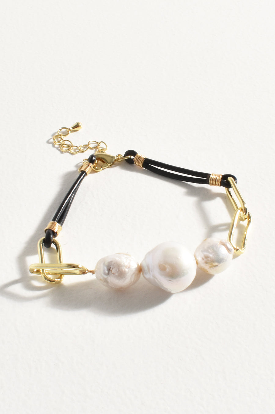 Leather Chain Freshwater Pearl Bracelet (Black)