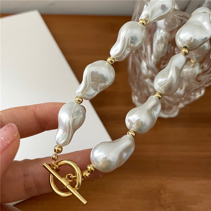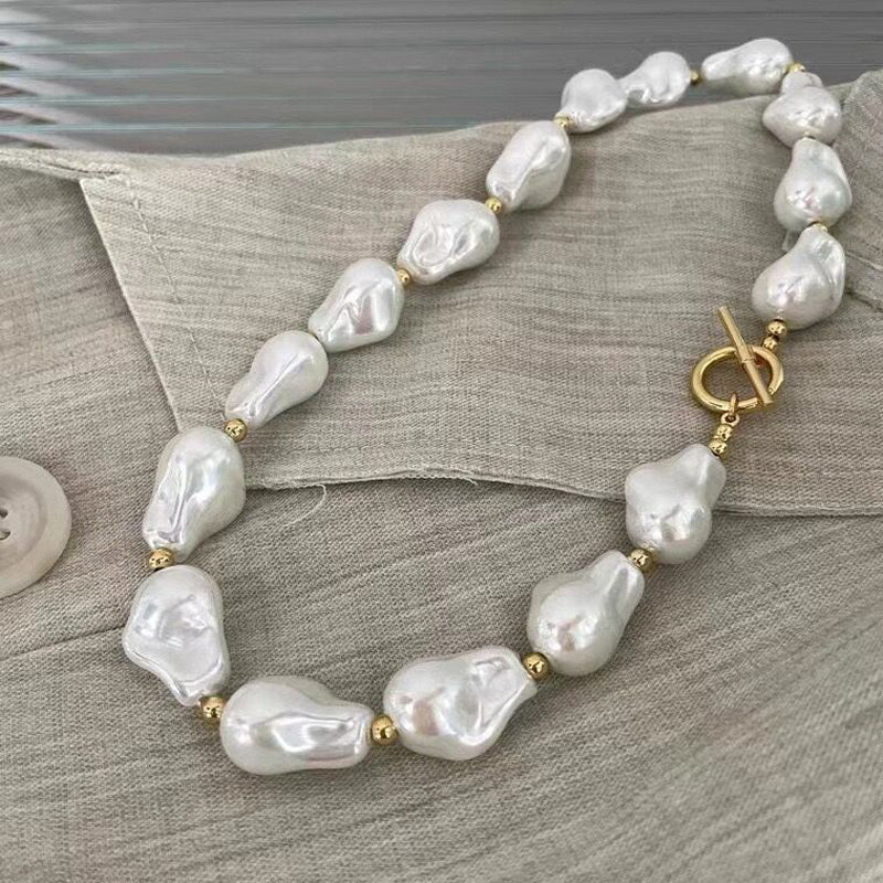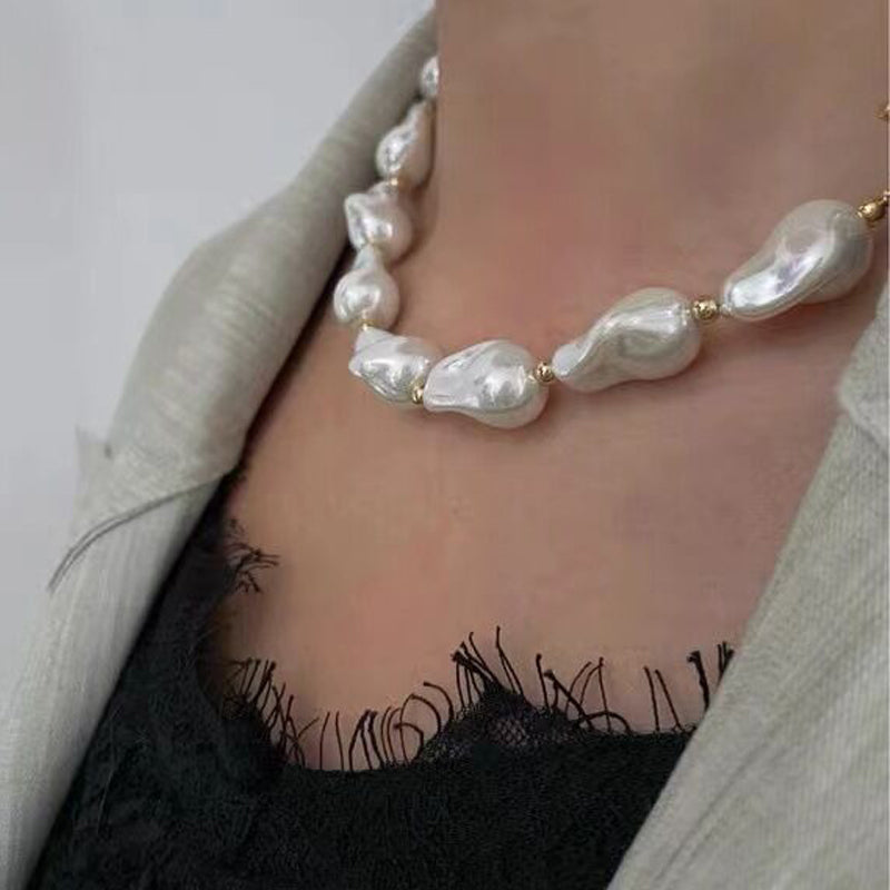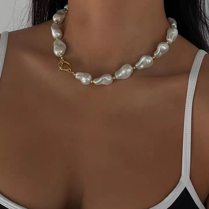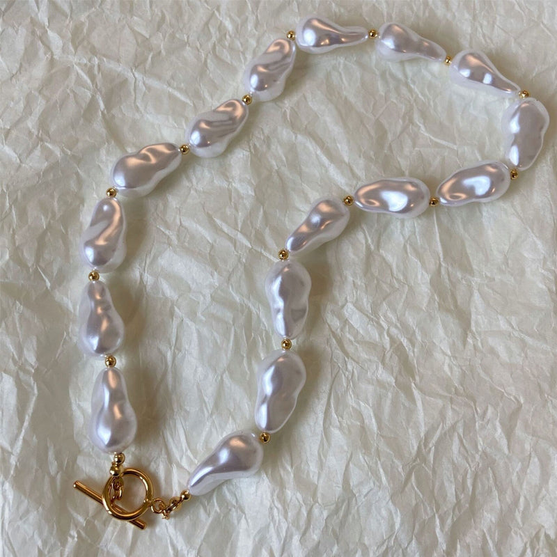 Featuring luminous baroque-style pearls strung together in an organic statement design, each necklace carries its own unique character. Inspired by coastal textures and sunlit tides, it reflects the quiet luxury of ocean treasures.