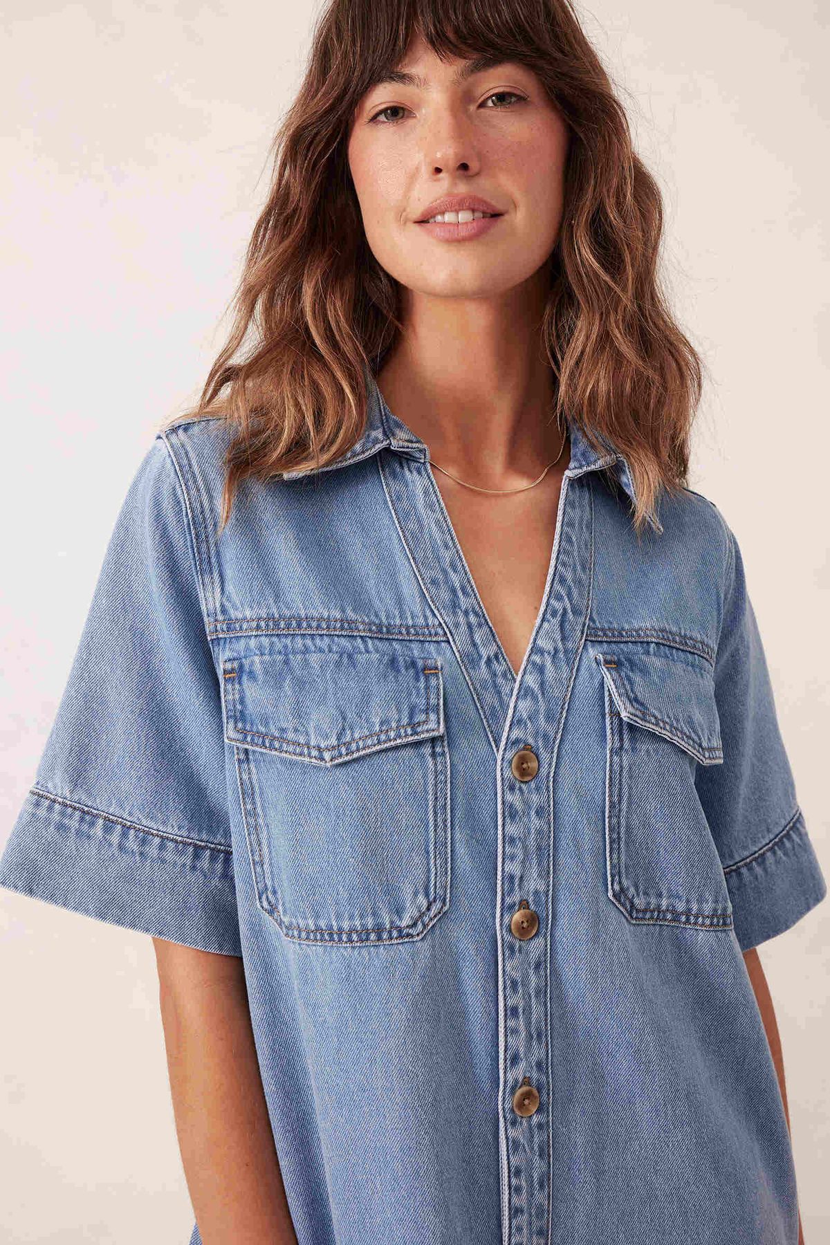 SAMMY RELAXED SHIRT DRESS/MID VINTAGE BLUE