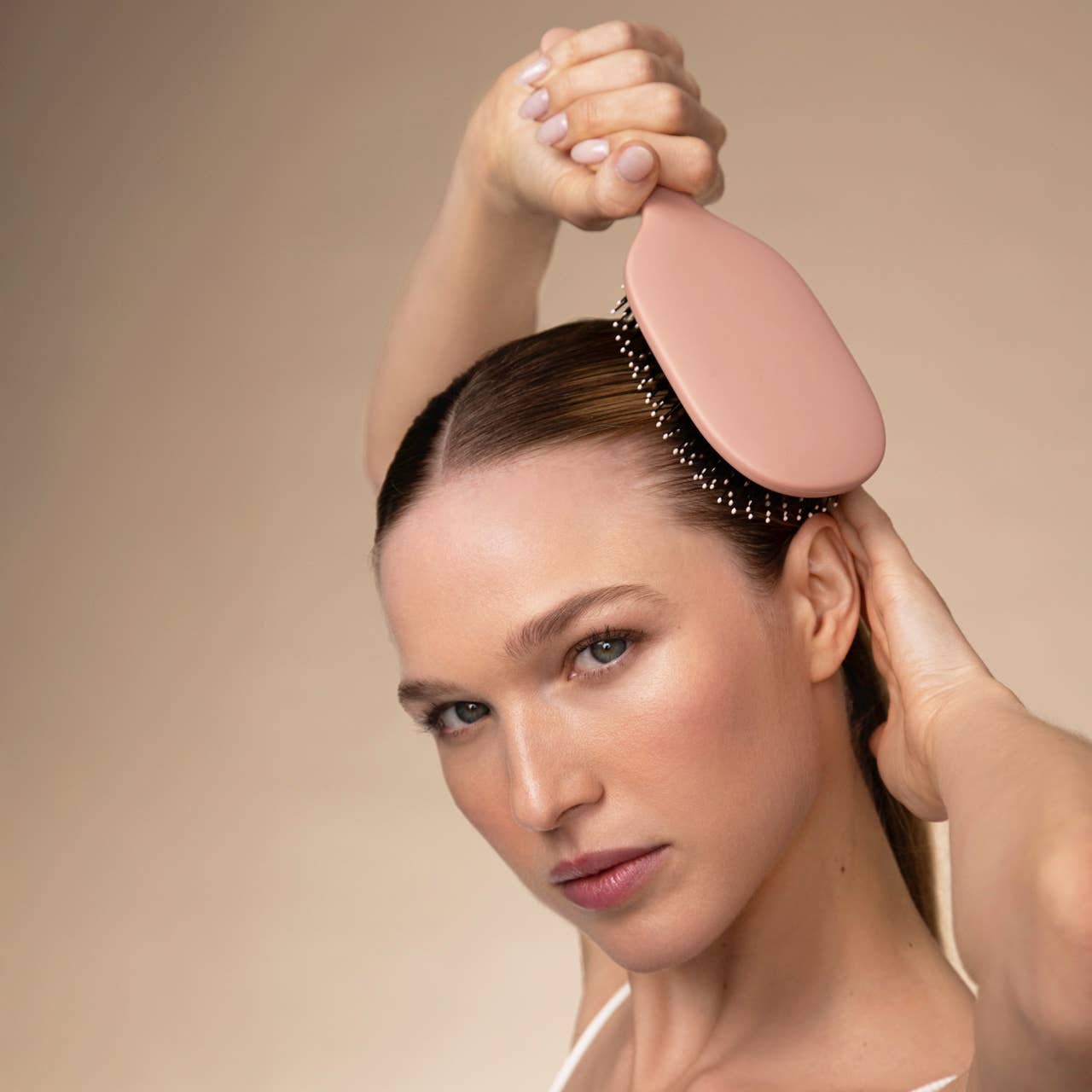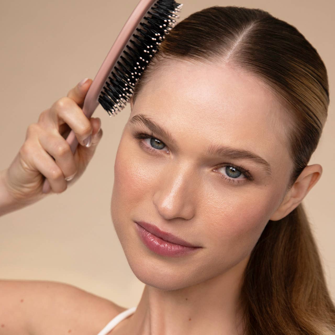 Dual-bristle technology: vegan boar bristles smooth & shine while nylon bristles gently detangle even thick, textured strands. • Cushioned rubber pad flexes with your hair & scalp for a comfy, tension-free brushing experience. • Promotes scalp circulation, reduces breakage, and distributes natural oils for healthier, shinier hair. • Handcrafted with durable, sustainable materials for a brush that’s built to last. 𝗪𝗵𝘆 𝗬𝗼𝘂’𝗹𝗹 𝗟𝗼𝘃𝗲 𝗧𝗵𝗶𝘀: • Sleek, modern design that looks as good on your vanity as it feels in your hair. • Gentle detangling meets glossy finish—all in one brush. • Stimulates your scalp while brushing to support healthy hair growth. • Reduces frizz & flyaways for a polished, smooth look.