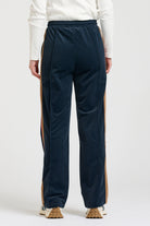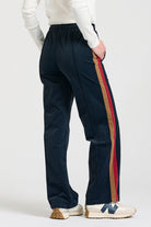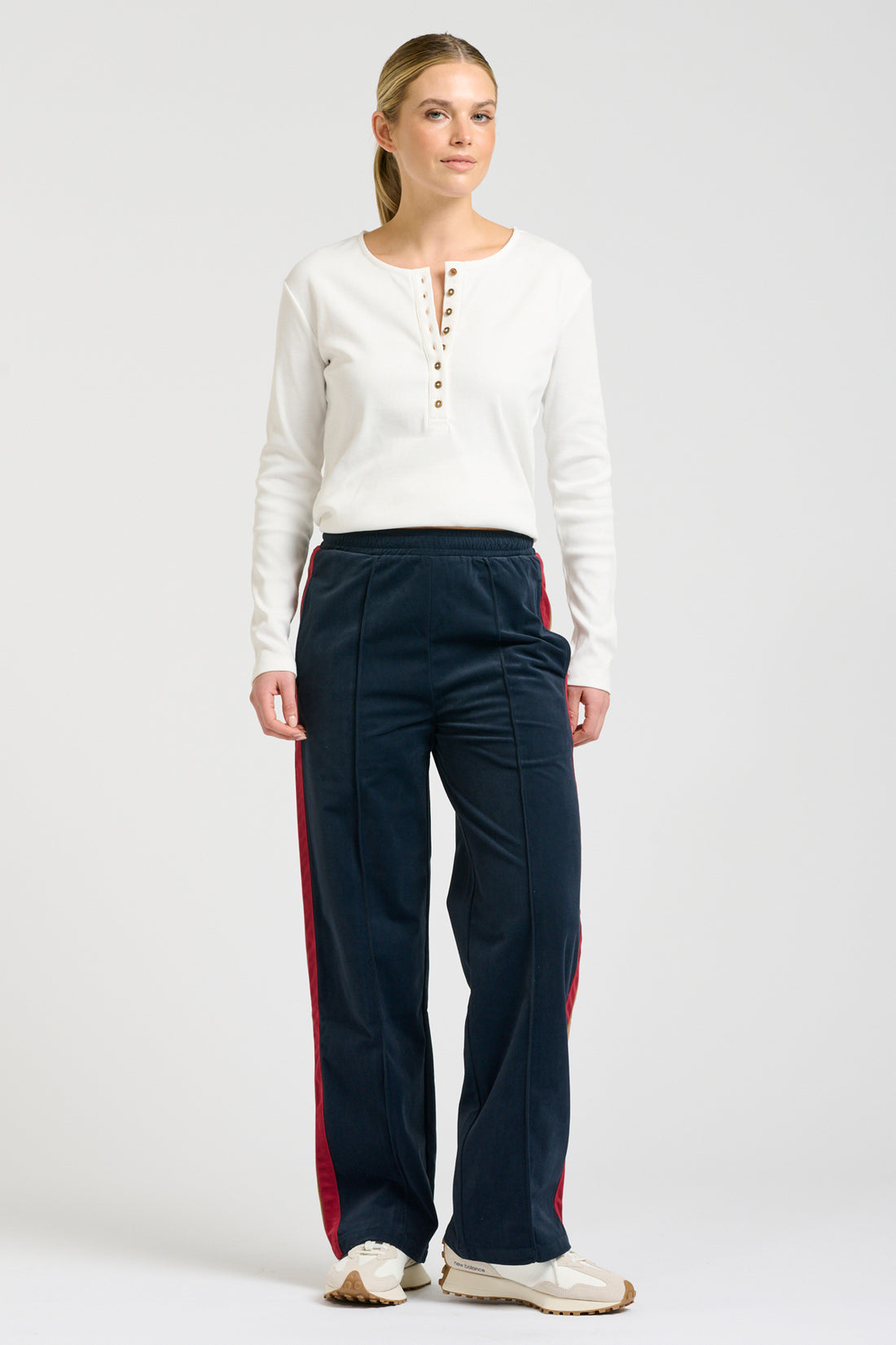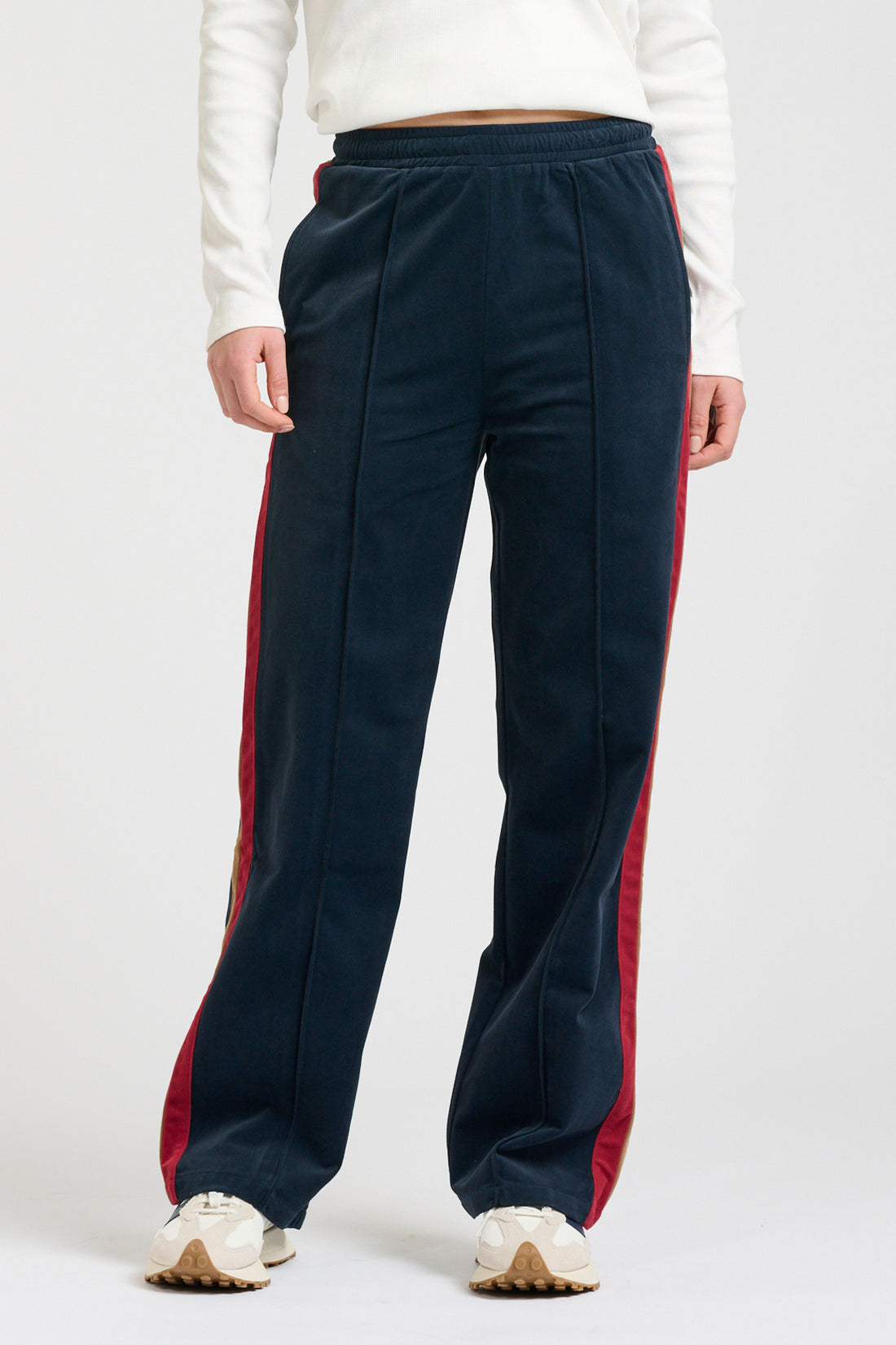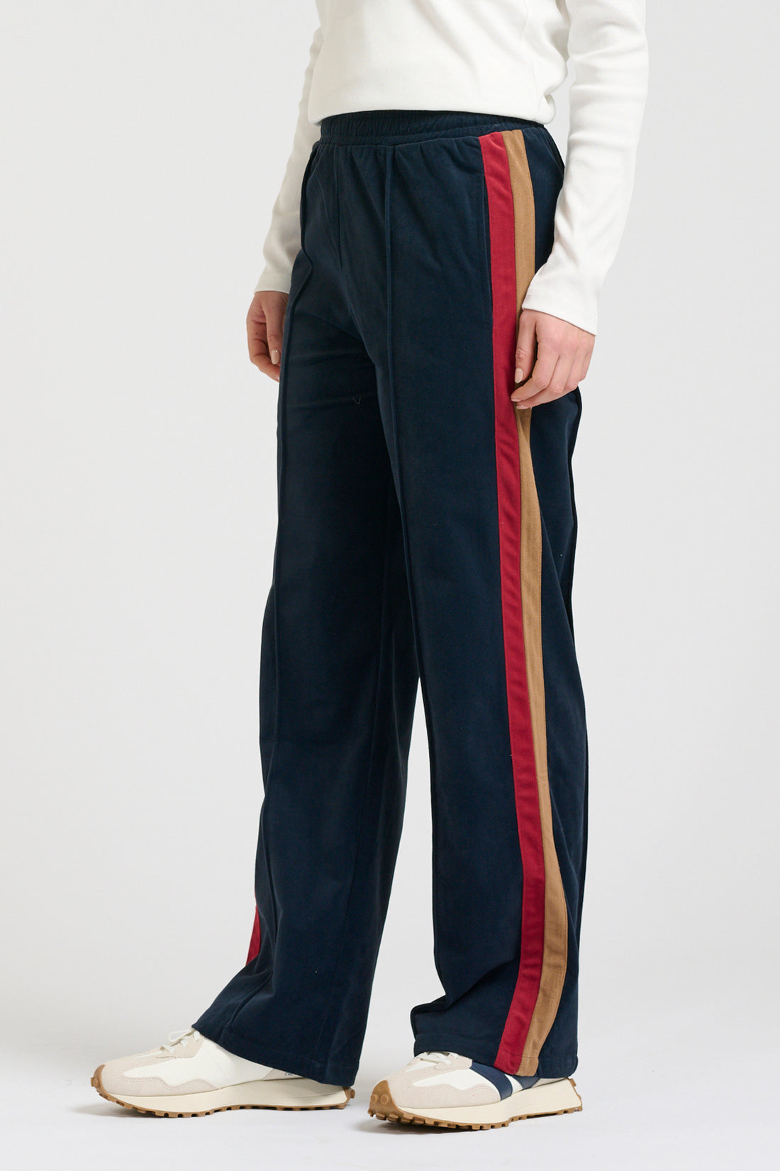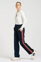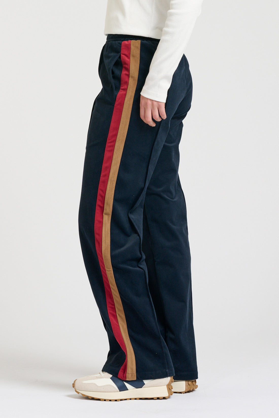 The Lucile Velvet Twill Pant - French Navy With Ruby & Tobacco Stripe