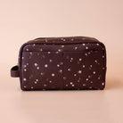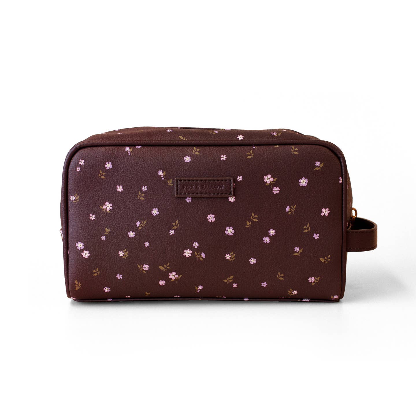 Introducing the coolest toiletry bags you've ever seen! Crafted from super soft, yet durable luxury pebble vegan leather it's easy to keep clean - simply wipe down with a damp cloth. Medium: 25 x 10.5 x 14.5cm. Pebble vegan leather with a tan lining. Internal zip pocket. Gold hardware. Two outer pouch pockets. Handle. Gold zipper. Packaged with a diecut gold foiled swing tag. Designed in Australia, made ethically in China.