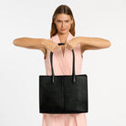 Big on space and capability, low on fuss. This structured tote means business — literally. Fits your laptop in the internal padded sleeve, has a zipper pocket for your small valuables and is still spacious enough for all the extras you can't leave home without. The discreet exterior magnet pocket keeps what you need close at hand, without slowing you down. 'Without Warning' keeps everything in order while looking effortlessly composed.