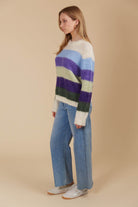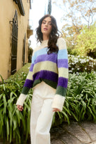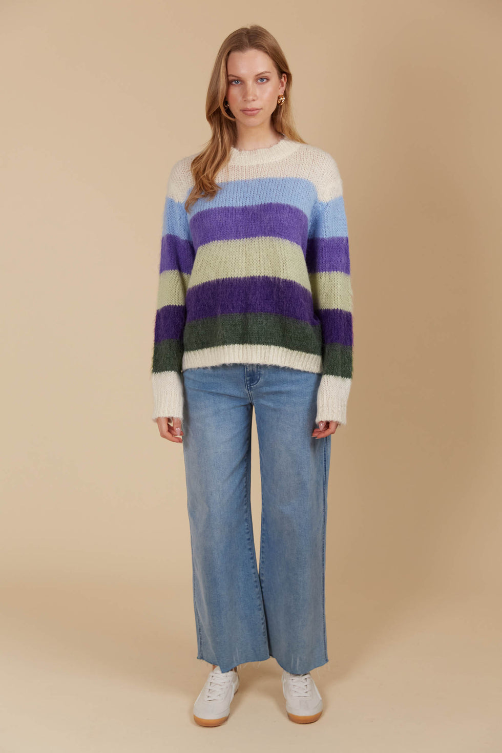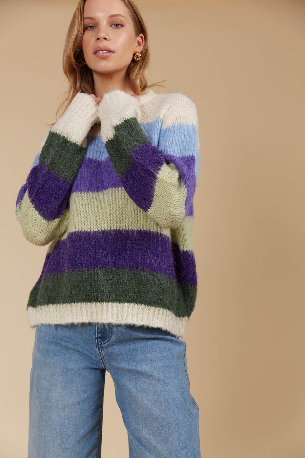 Say hello to your ultimate cosy winter staple! The Pallas Stripe Jumper wraps you in the warmth of an ultra-soft knit, making it the perfect addition to your seasonal wardrobe. Featuring a playful striped pattern, this jumper adds a splash of fun to your look. The relaxed fit and chic Mohair-inspired texture ensure you stay snug all season. Pair it with knit pants and clogs for relaxed days at home, or dress it up with a maxi skirt, bold accessories, and boots for a stylish outing.