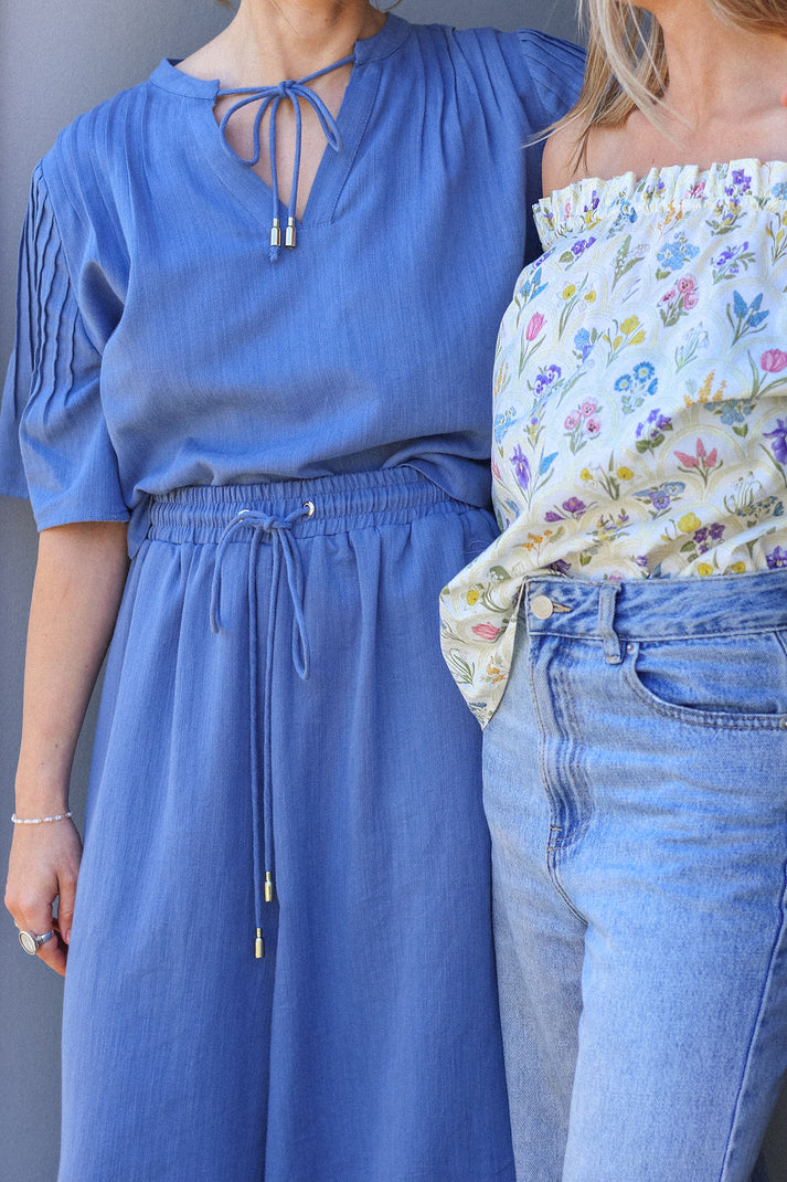 - Comfortable elasticated waistband with adjustable drawstring tie finished with metallic cord ends