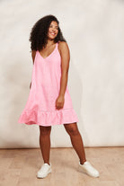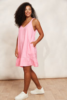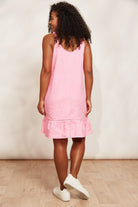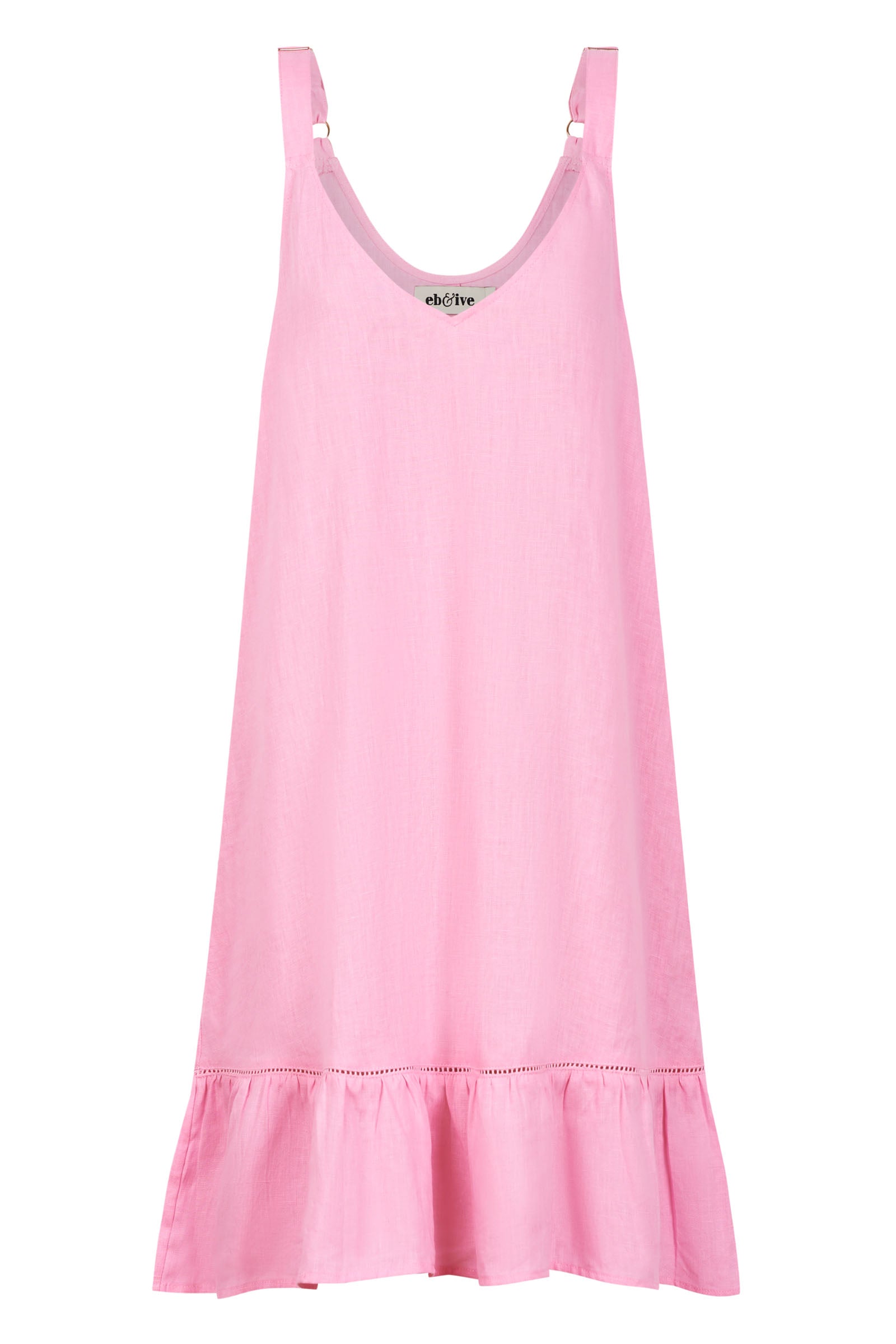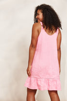 Ideal for those scorching summer days that turn into balmy nights, the Sojourn Tank Dress is your go-to mini dress. Made with a breathable linen fabric, it will keep you cool and comfortable. The V-neckline, adjustable shoulder straps, and relaxed silhouette provide a flattering fit, while the frilled hem and contrast detail add a charming, feminine flair. Pair this dress with sandals, sneakers, or wedges for an easy-breezy summer look.