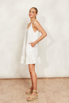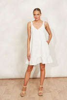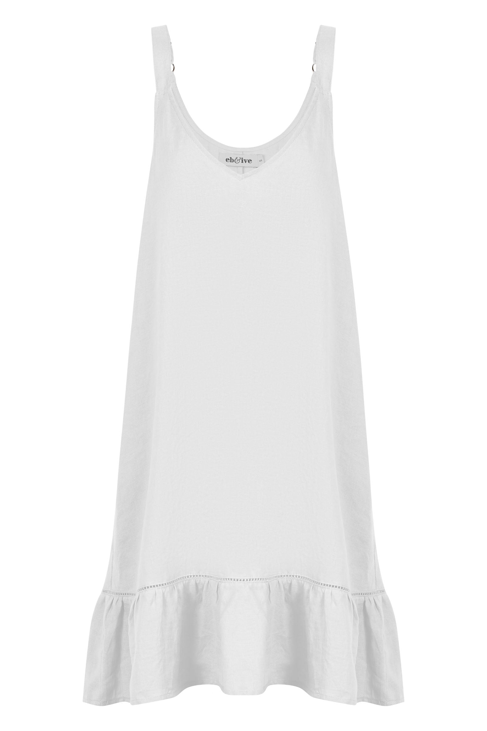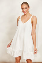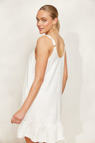 Ideal for those scorching summer days that turn into balmy nights, the Sojourn Tank Dress is your go-to mini dress. Made with a breathable linen fabric, it will keep you cool and comfortable. The V-neckline, adjustable shoulder straps, and relaxed silhouette provide a flattering fit, while the frilled hem and contrast detail add a charming, feminine flair. Pair this dress with sandals, sneakers, or wedges for an easy-breezy summer look.