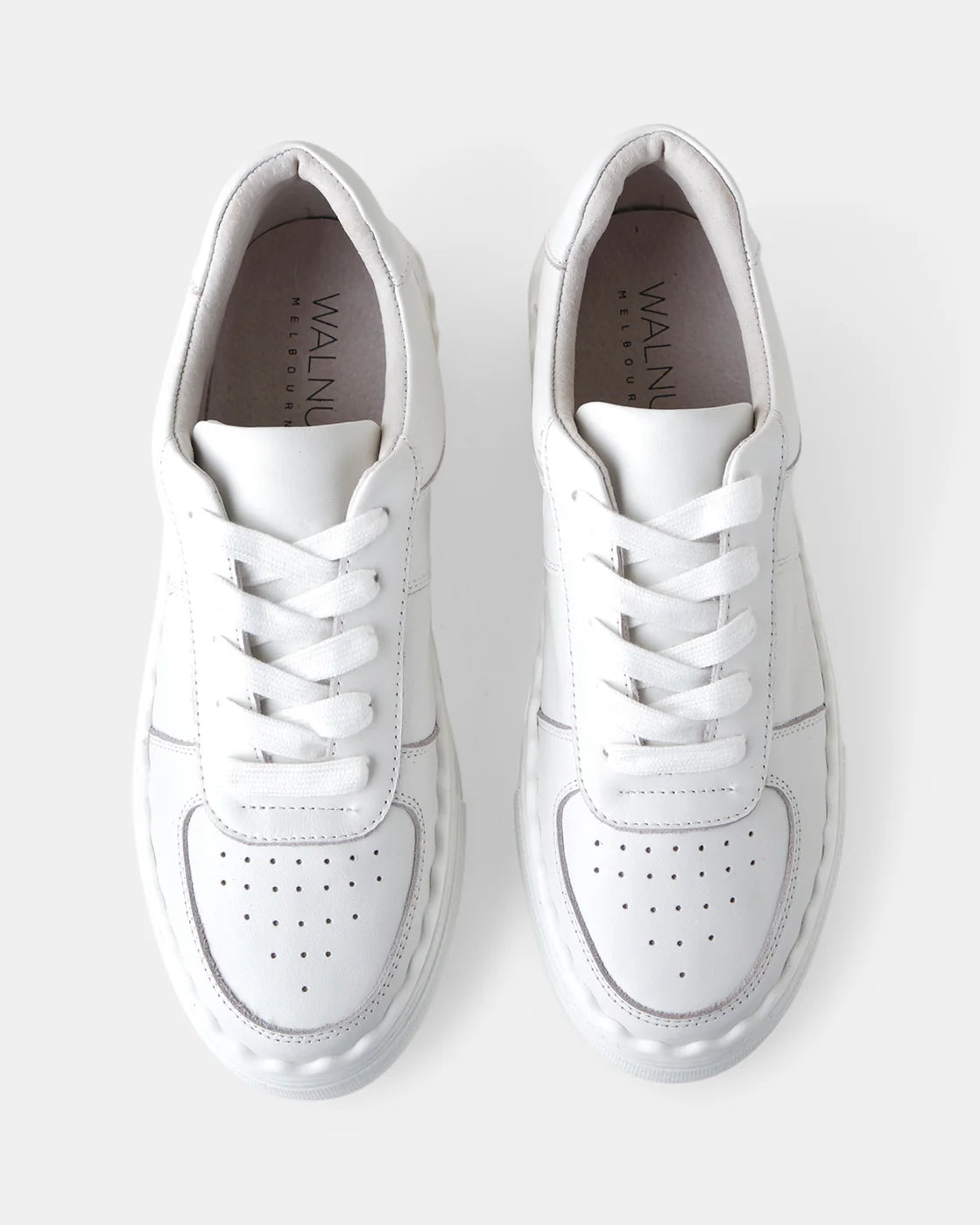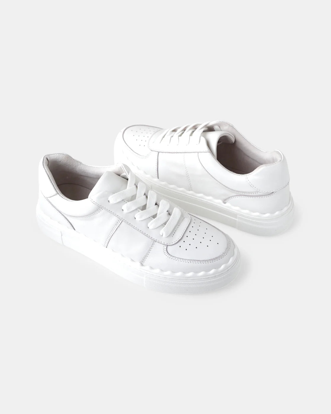 A white pair of sneakers for every occasion. The Houston leather sneaker low-tops from Walnut Melbourne certainly qualify for that. There's no failing here. Featuring a round toe, front lace-up and a flat rubber sole with a scalloped trim.