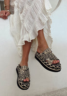 The Dana sandal is an essential addition to your summer wardrobe this season. Featuring elegant Jute criss-cross detailing in a soft gold hue, it adds a touch of glamour to any outfit. The versatile design makes it perfect for both daytime outings and evening events, effortlessly enhancing your style from day to night.