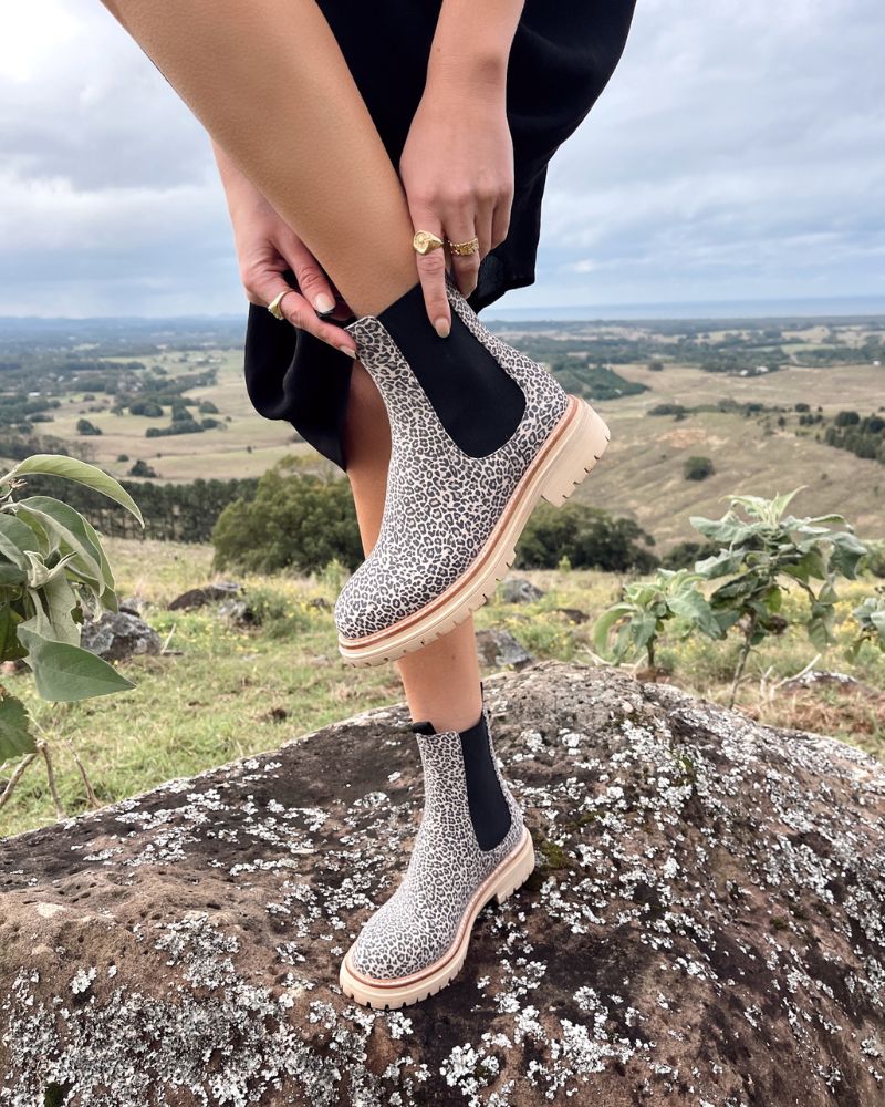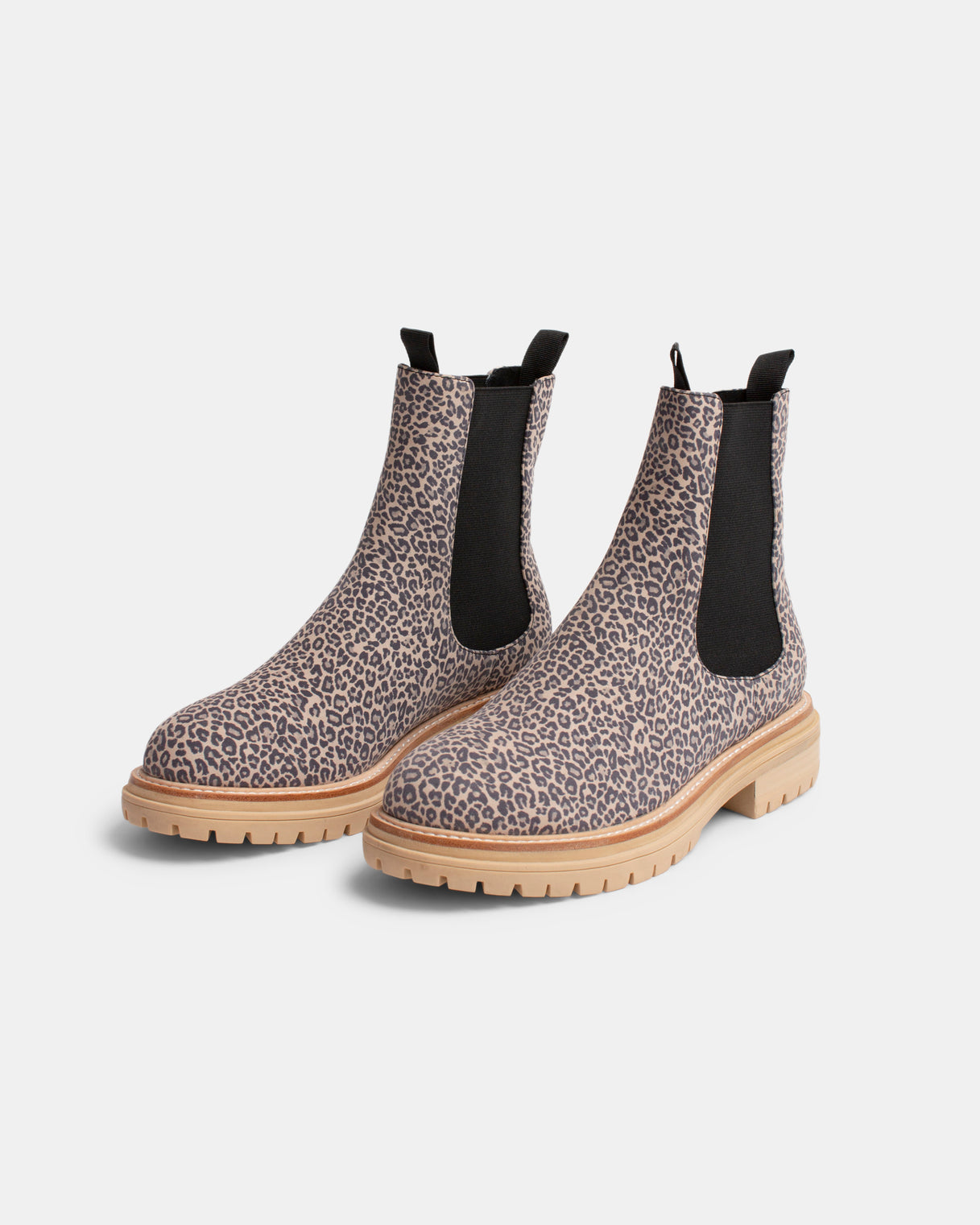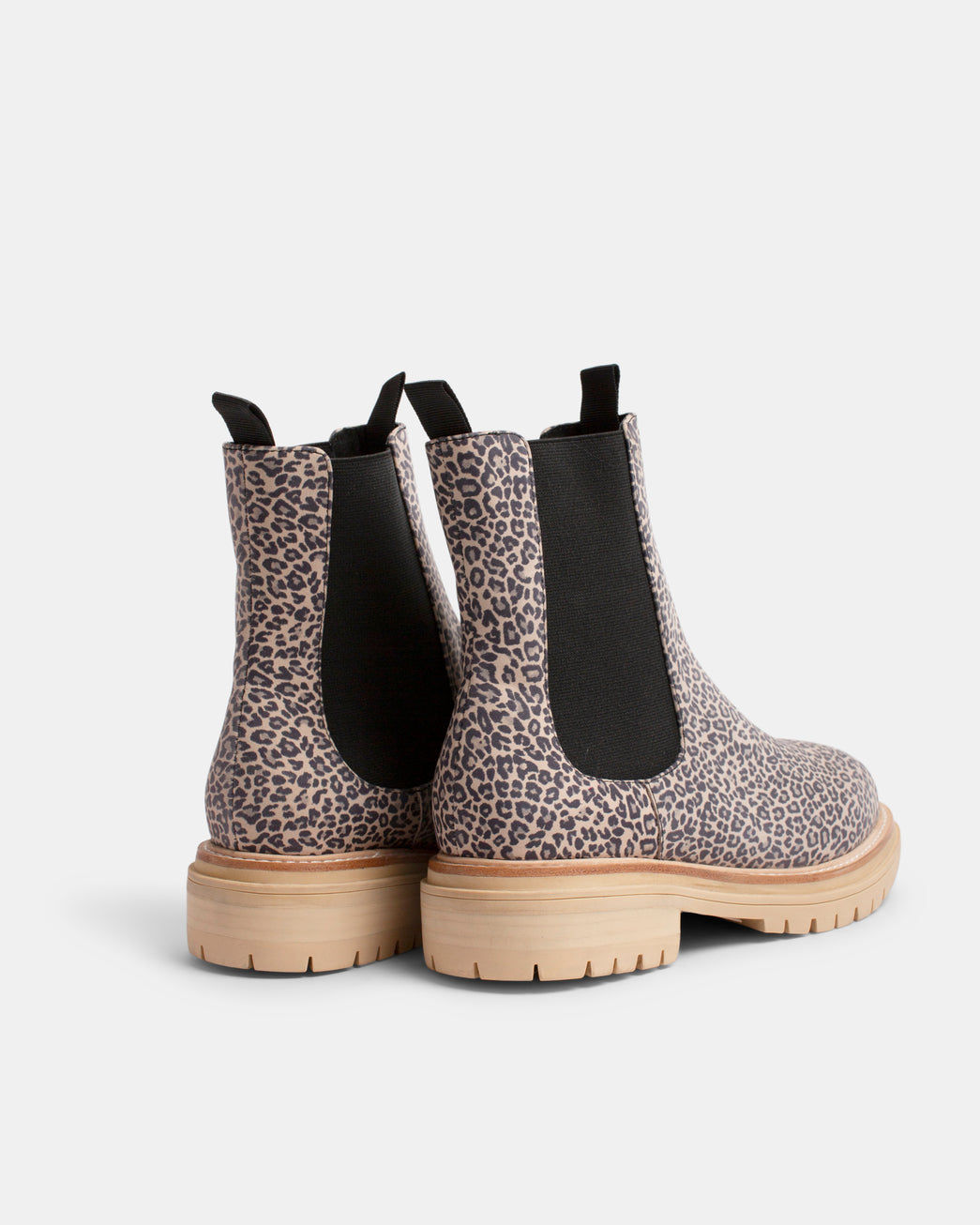 The Oak Leather Boot is a classic Chelsea style, a style you will get plenty of wear out of for seasons to come. Made from an Oat Leopard print leather, they have elasticated sides with pull tabs and are grounded by lugged rubber soles. Pair them with everything from a midi dress to denim.