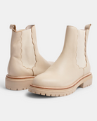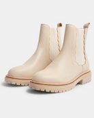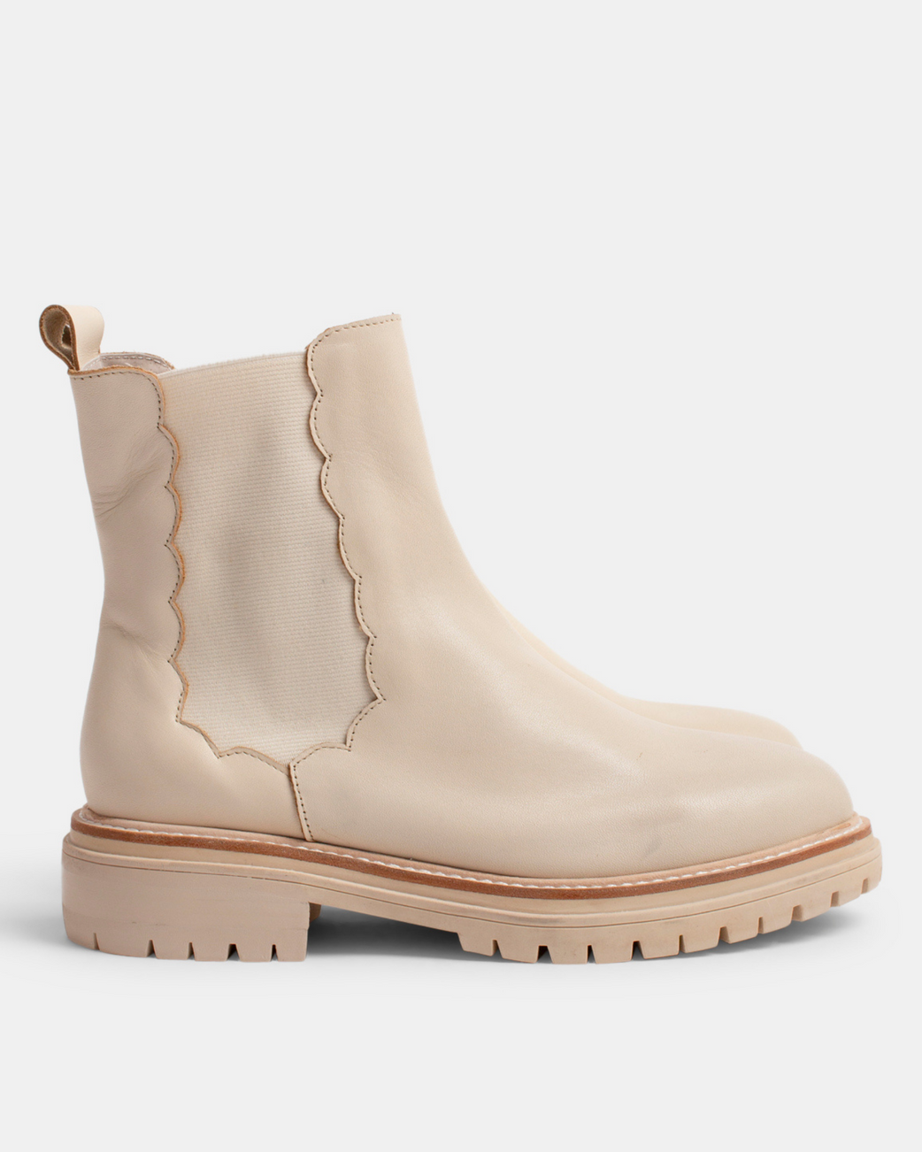 The Opal Leather Boot is a classic Chelsea style with gorgeous scalloping details around the gusset elastic, a style you will get plenty of wear out of for seasons to come. Made from smooth fawn leather, they have elasticated sides with pull tabs and are grounded by lugged rubber soles. Pair them with everything from a midi dress to denim.