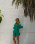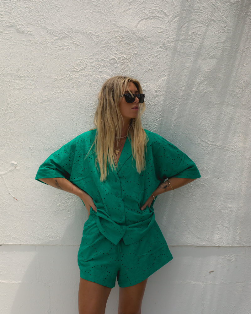 Stay in vogue with the Tropez Short in Apple! Featuring an elasticised drawstring waistband and crafted from light, breathable fabric, these shorts are the ultimate choice for warm weather, offering both style and comfort for your summer adventures.