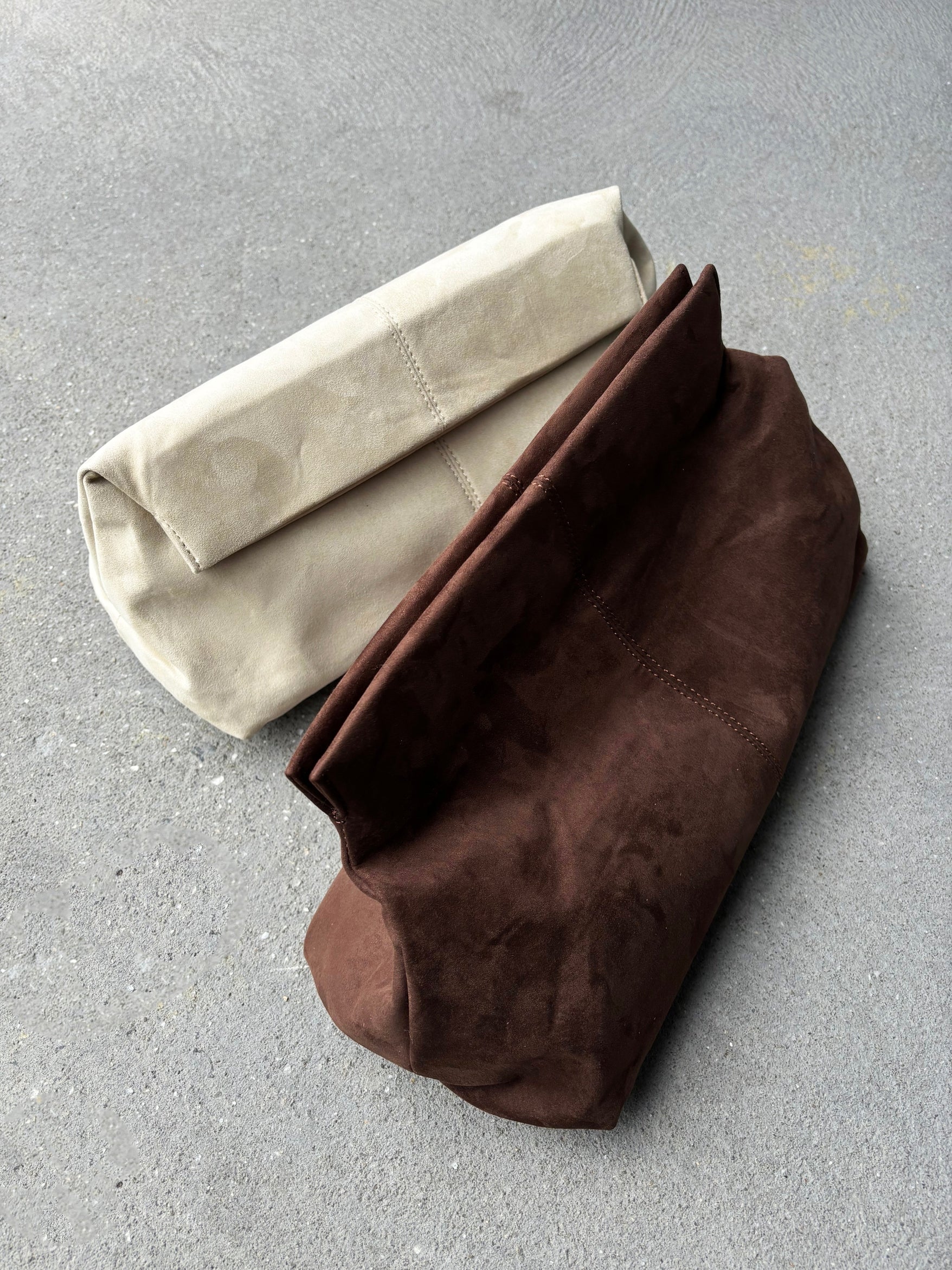 Crafted from smooth, sleek vegan suede, this stylish clutch features a fully lined interior and an adjustable top closure to keep your essentials secure. Designed for versatility, it effortlessly complements both casual and formal looks. Material : Soft Faux Suede Width: 36cm Height: 23cm Depth: 17cm