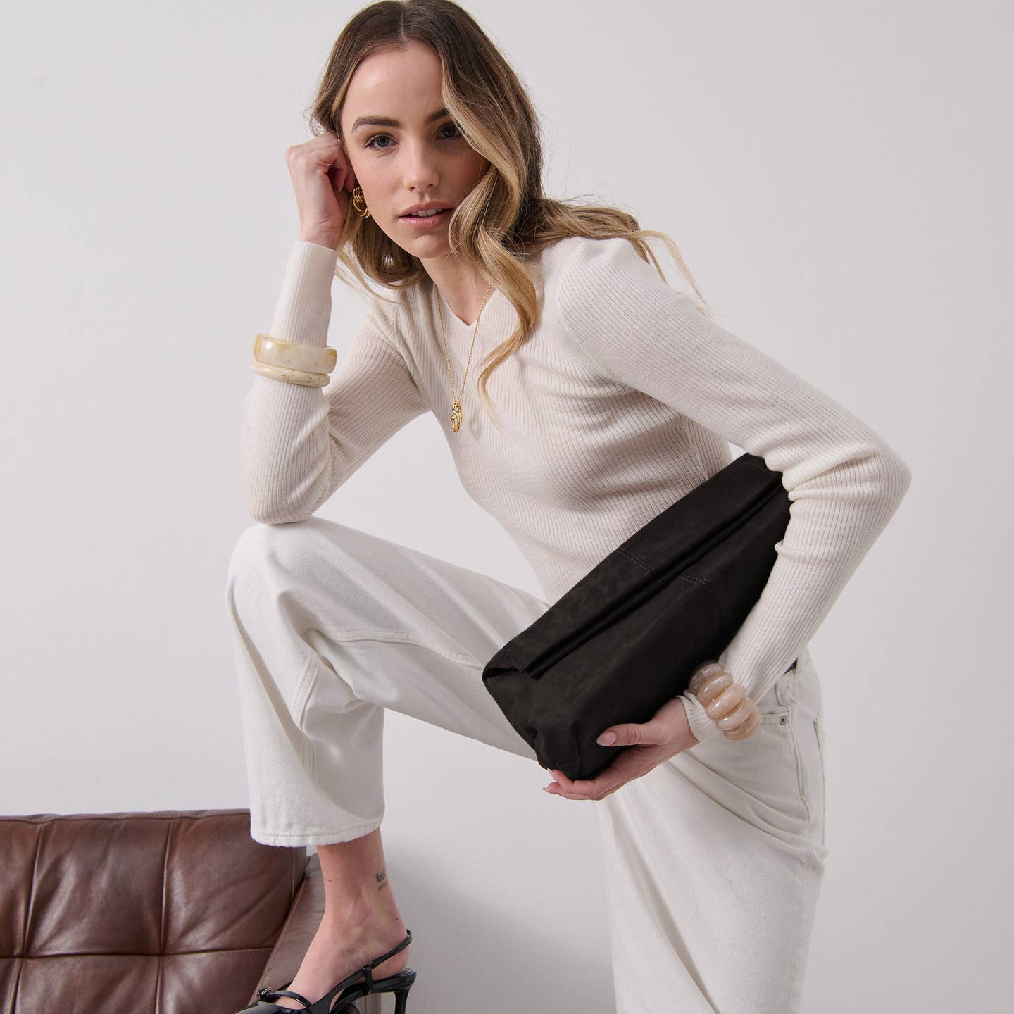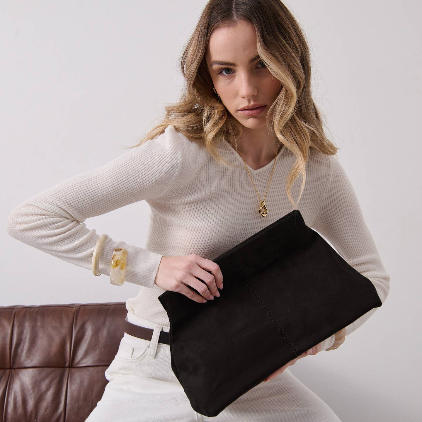Becca Suede Clutch Bag in Black