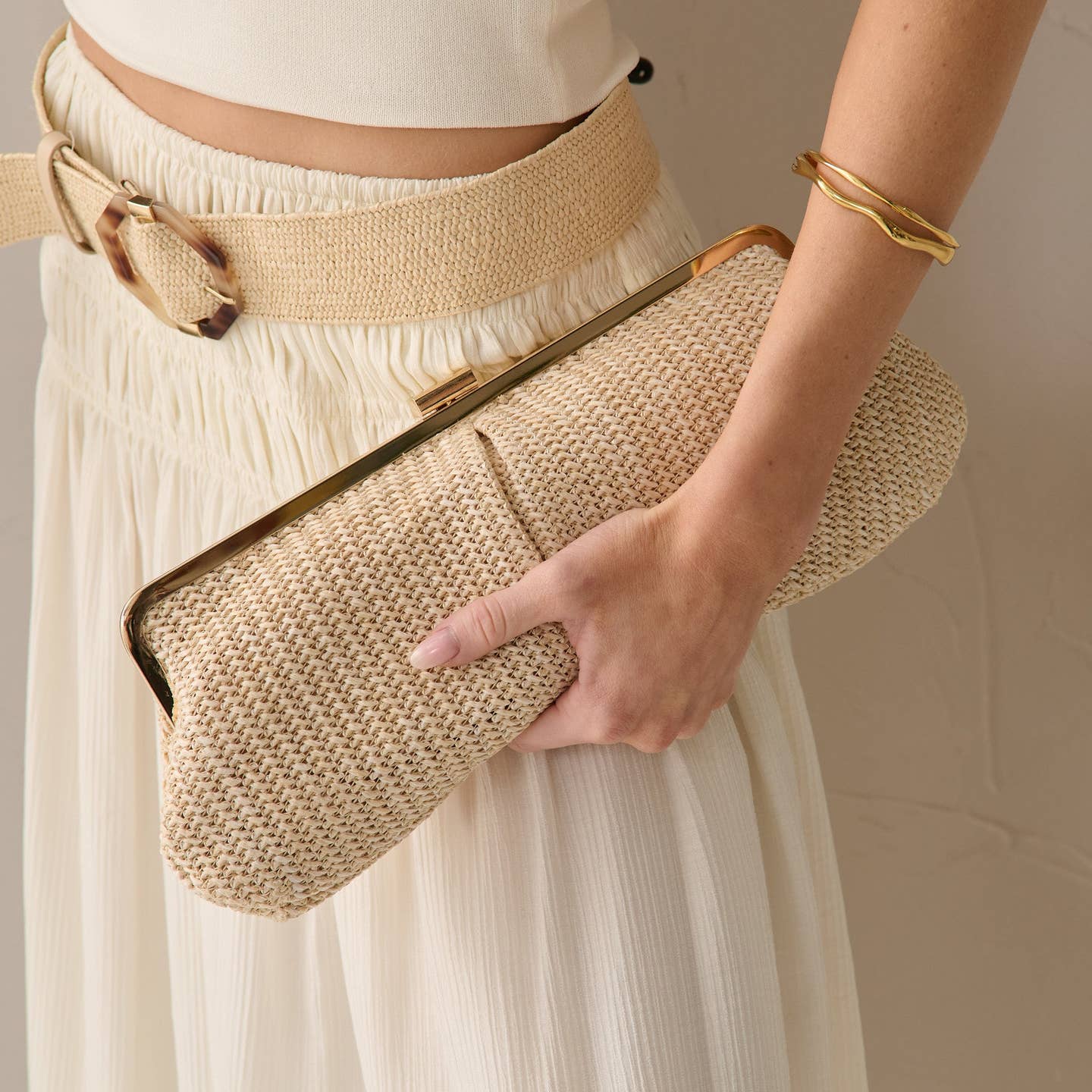 Chic, minimal, and effortlessly polished, this straw clutch is your go-to for both day and night. Featuring a sleek metal closure, and a fully lined interior, it's designed to hold your essentials in style. Material : Premium Straw Width: 36cm Height: 35cm (Inc handle) Depth: 17cm