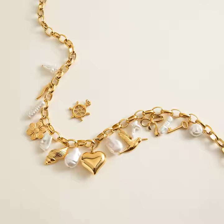 Crafted from stainless steel with 18k gold plating, the Tide Charm Necklace is waterproof, tarnish-resistant and designed for everyday wear. Its classic chain design makes it perfect for layering or building your own evolving charm collection.