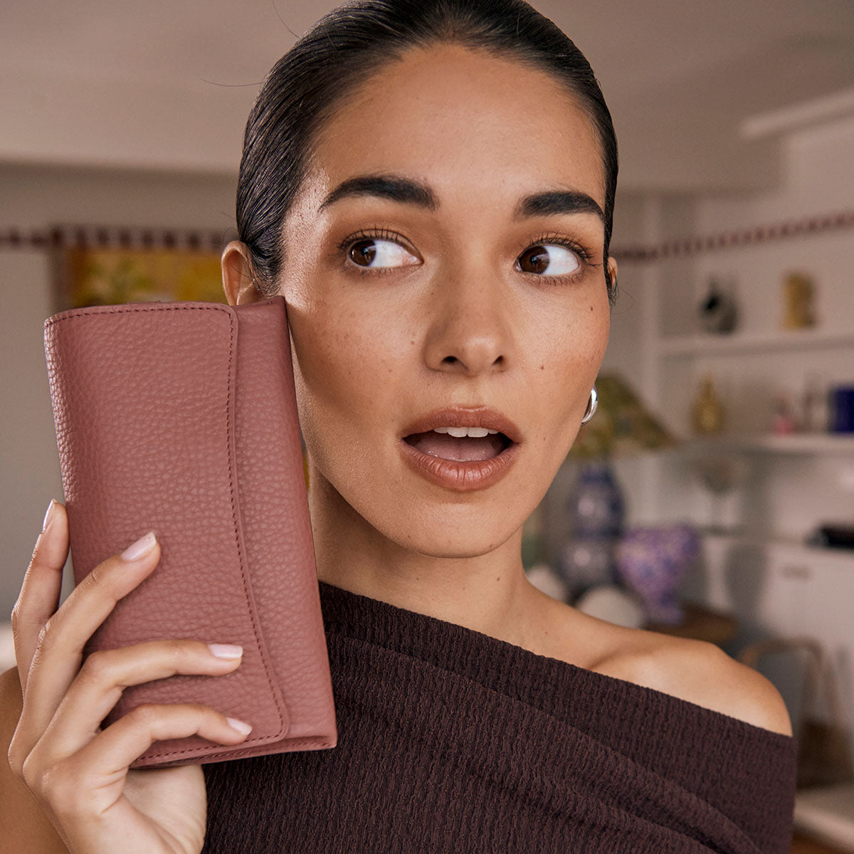 - Soft shrunken pebble leather
