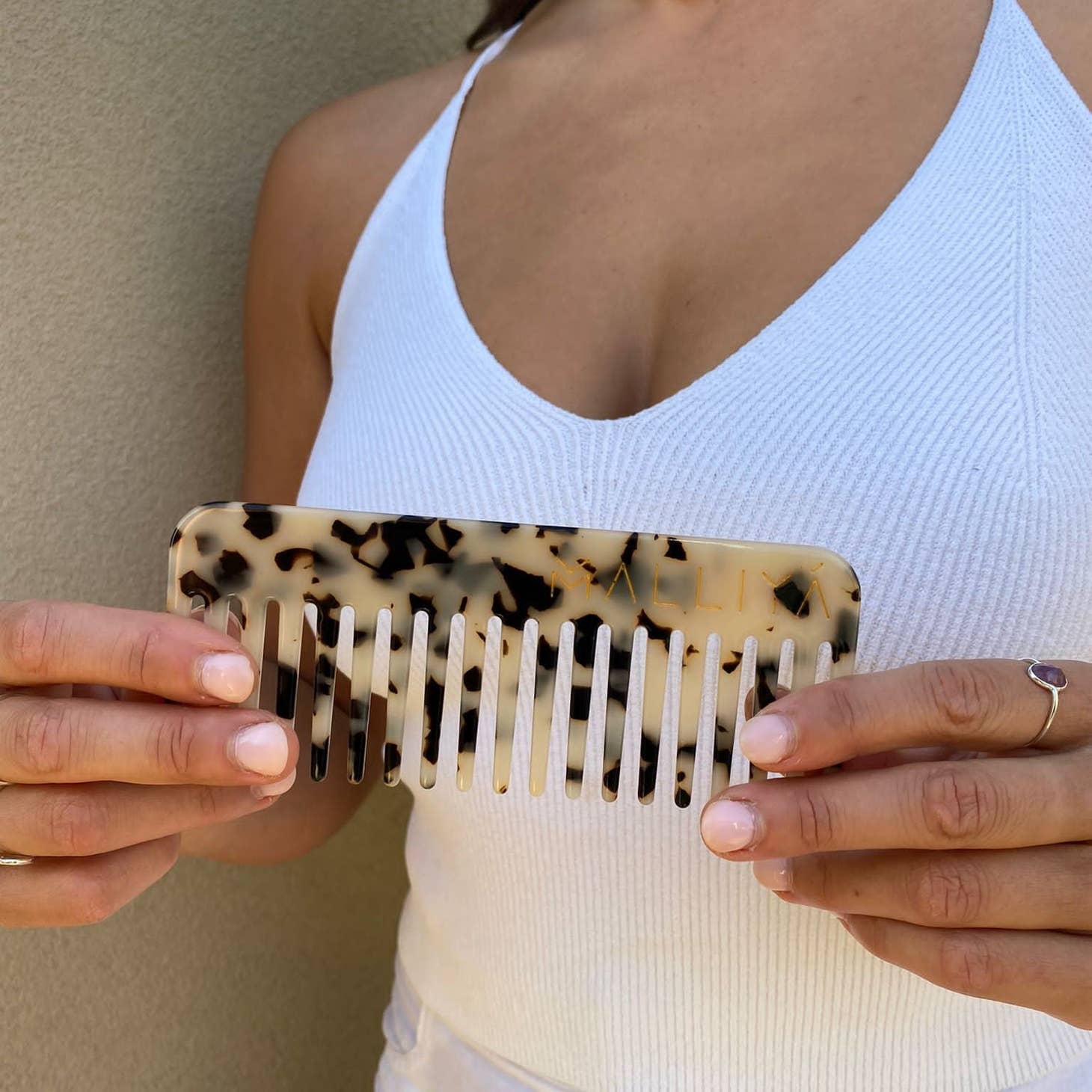 Introducing our premium OG Comb. Beautiful enough to display in your bathroom and functional enough to slip into your purse. Perfect for at home or salon use for instaworthy hair. Features - 4mm thick and sturdy wide tooth comb - Measures 15cm x 6cm - Handmade premium acetate - Finished with the signature Malliya logo etched in gold - Available in 2 colours
