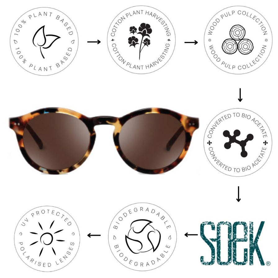 With striking lines and bold proportions, our 100% plant based Eden sunglasses are a chic wardrobe staple. Eden Crystal is a modern cat eye frame created from sustainable Castor Seed Oil and finished in a flattering crystal hue. This mid sized frame is suitable for all face shapes.