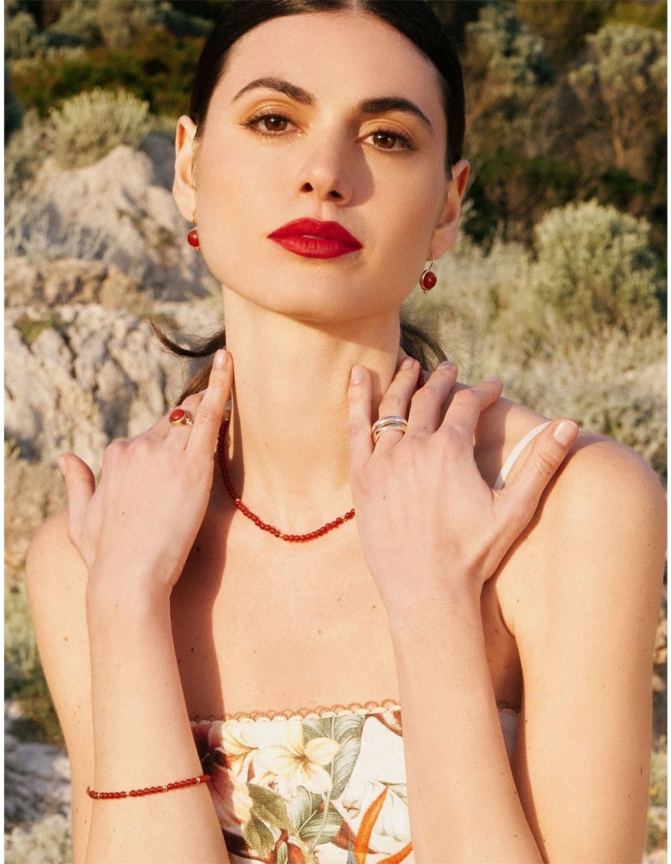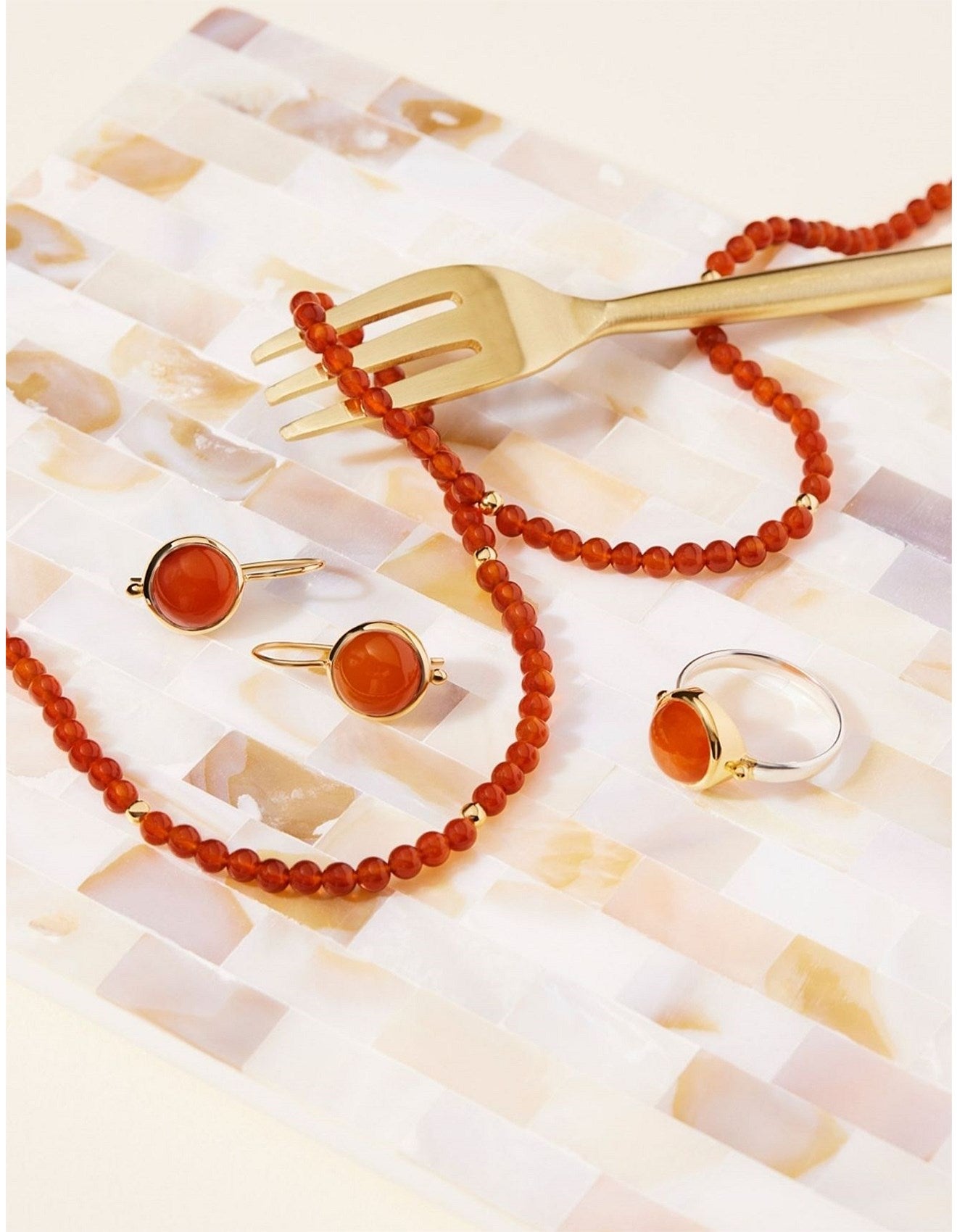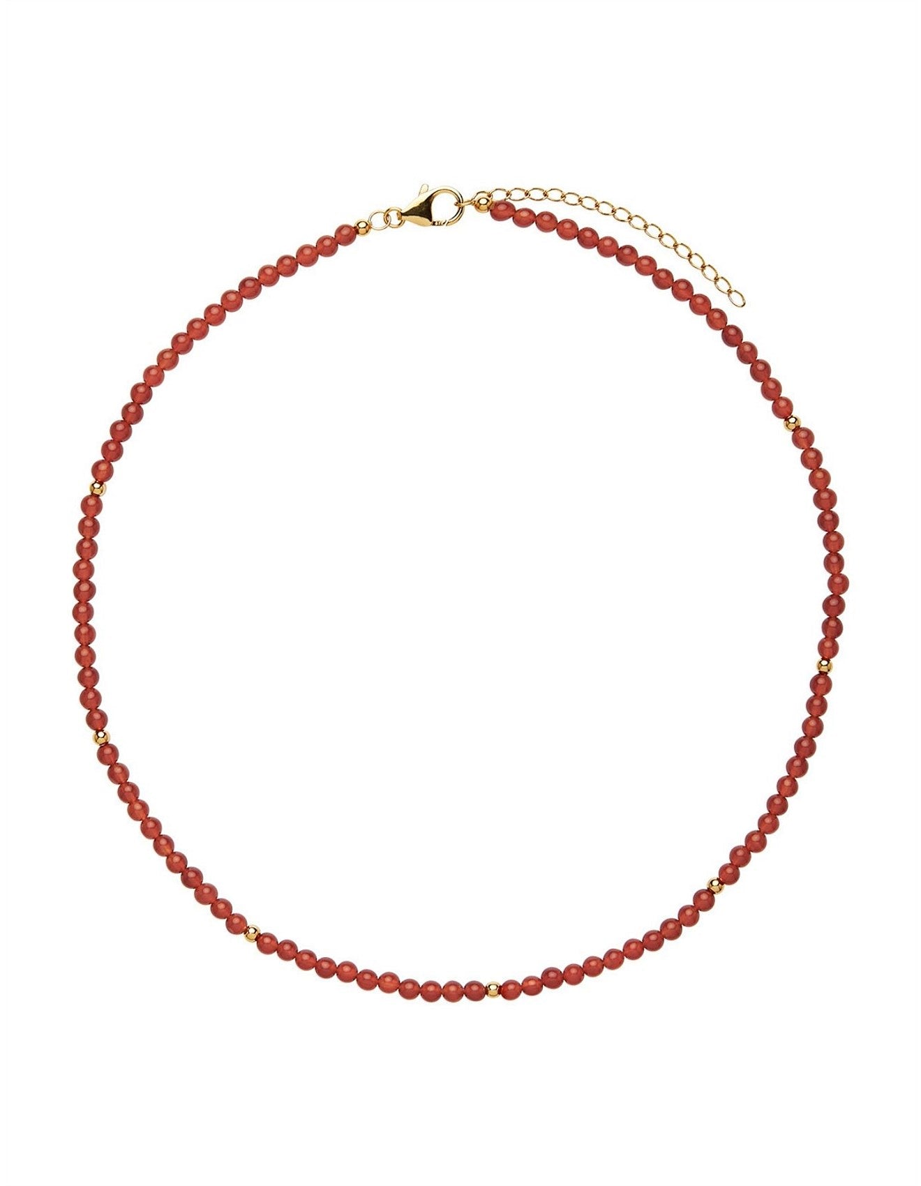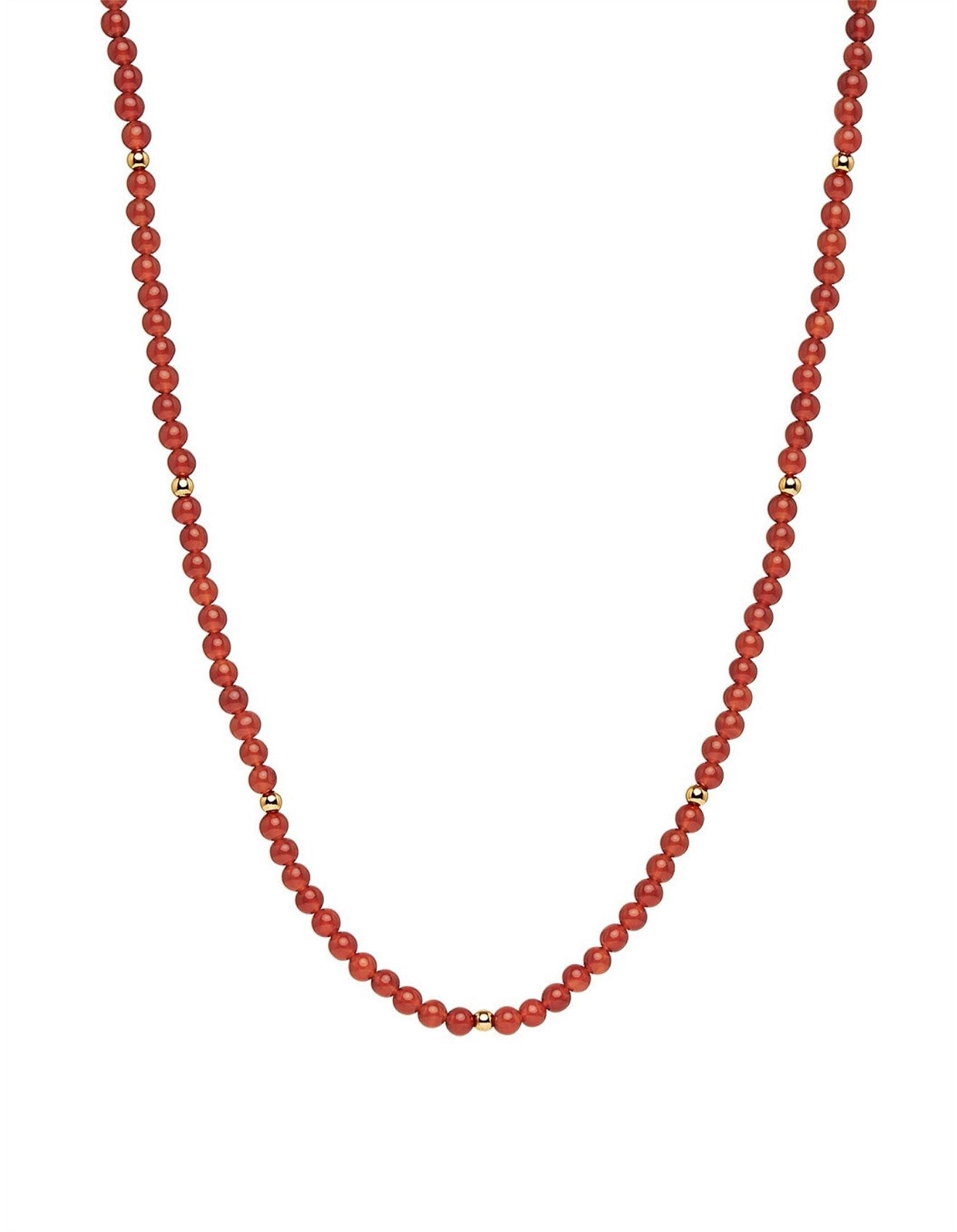 Wandering Capri¿s sun-kissed streets, we were captivated by the red geranio (geraniums) that framed doorways and cascaded down ancient stone walls. Their abundant colour infused the air with a sense of warmth and vitality. Our Jaipur gemstone artisans capture the flower¿s essence in this striking necklace, threading a fusion of red onyx and yellow gold plated beads to harness the colour of passion. Red onyx is a strength-giving stone said to elevate mood, making this creation perfect for energising your beauty.