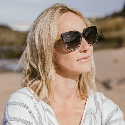 RIVIERA BLACK/IVORY TORTOISE - Wooden Polarised Sunglasses with Black Gradient Lens and White Maple Arms