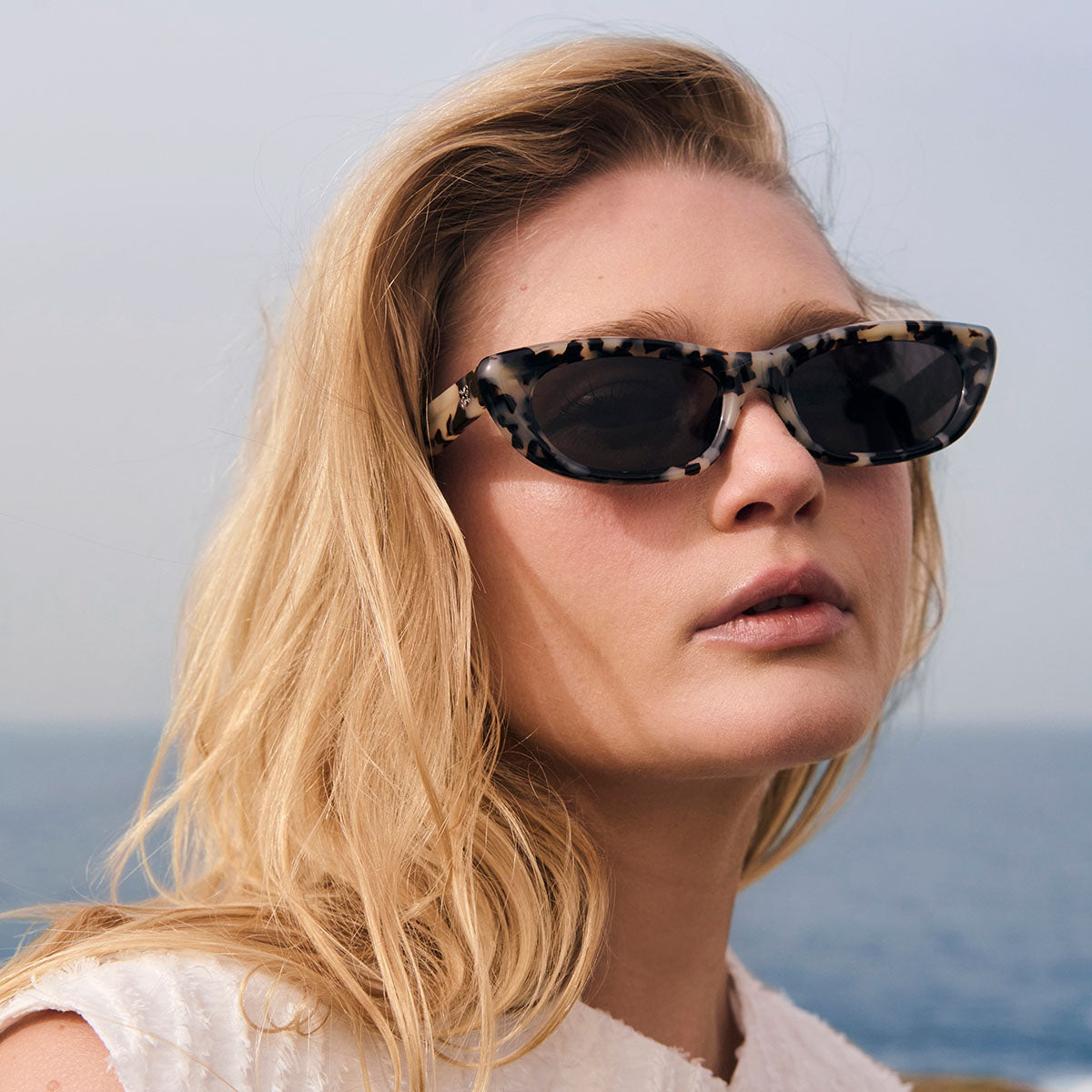 Not happy on the sidelines, these angular frames cut through the noise with an edgy, easy-going vibe. Made from premium acetate, fitted with quality polarised lenses, and finished with an anti-scratch, hot-stamped logo.
