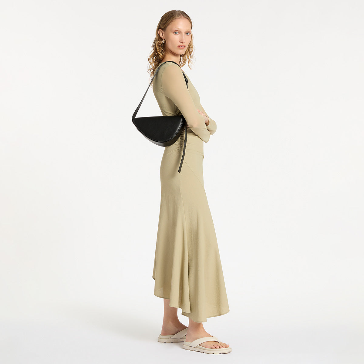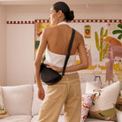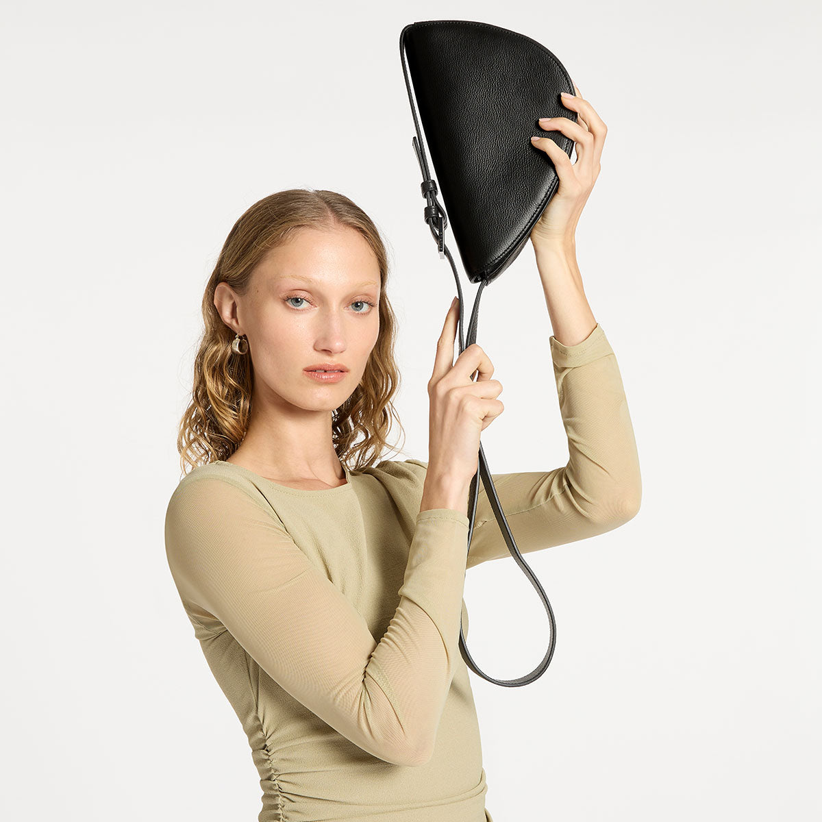 DescriptionEthereal; Subtle, beautiful, seeming to belong to another more spiritual world. With her delicate asymmetry 'Ethereal' will have passersby questioning her connections to the physical world. Structured and a little dressier, wear her crossbody by day and adjust the strap to use as a shoulder bag by night. Ethereal has enough space and compartments to throw all your essentials in, including outside back slider pocket, inside zipper pocket, card slots and lippy pocket.