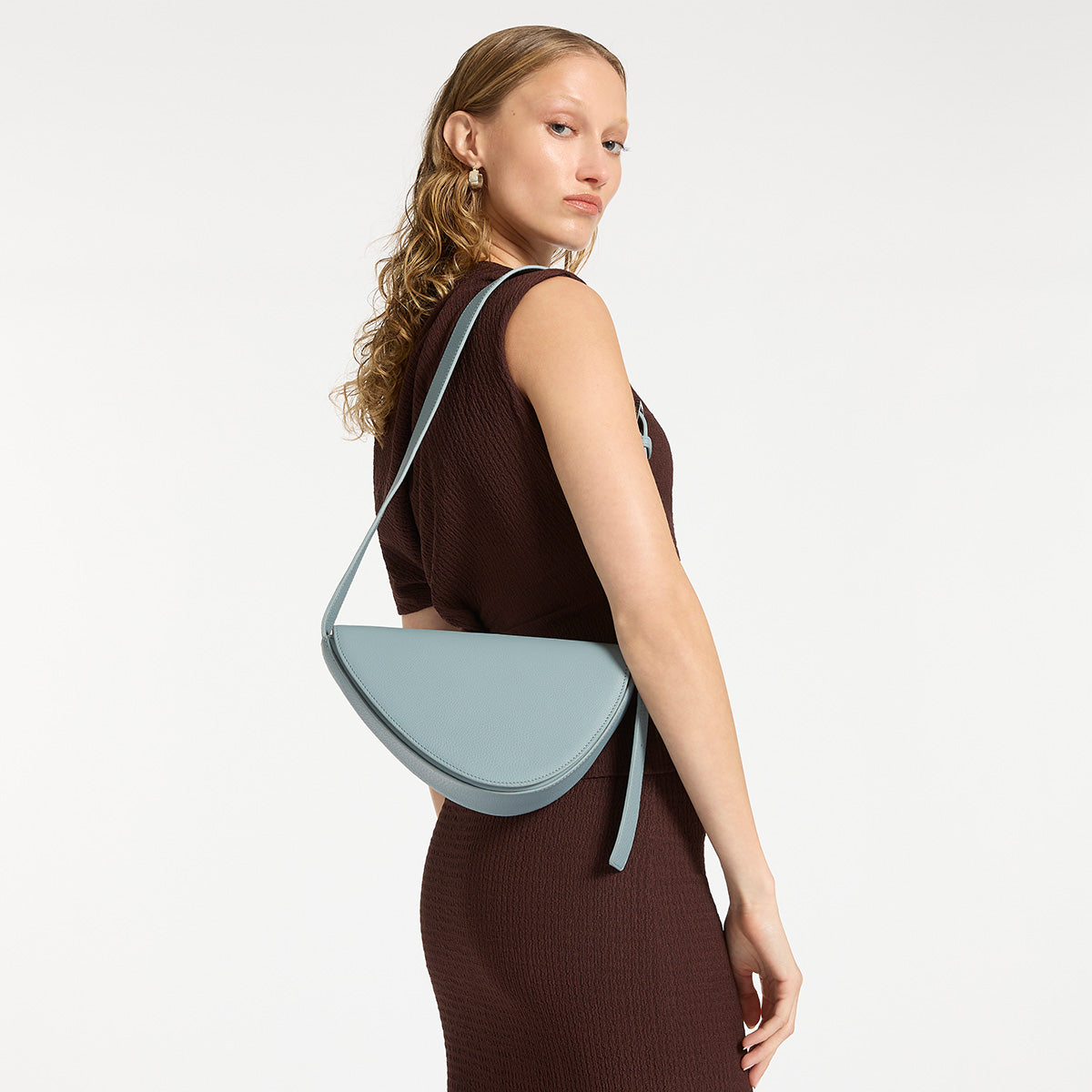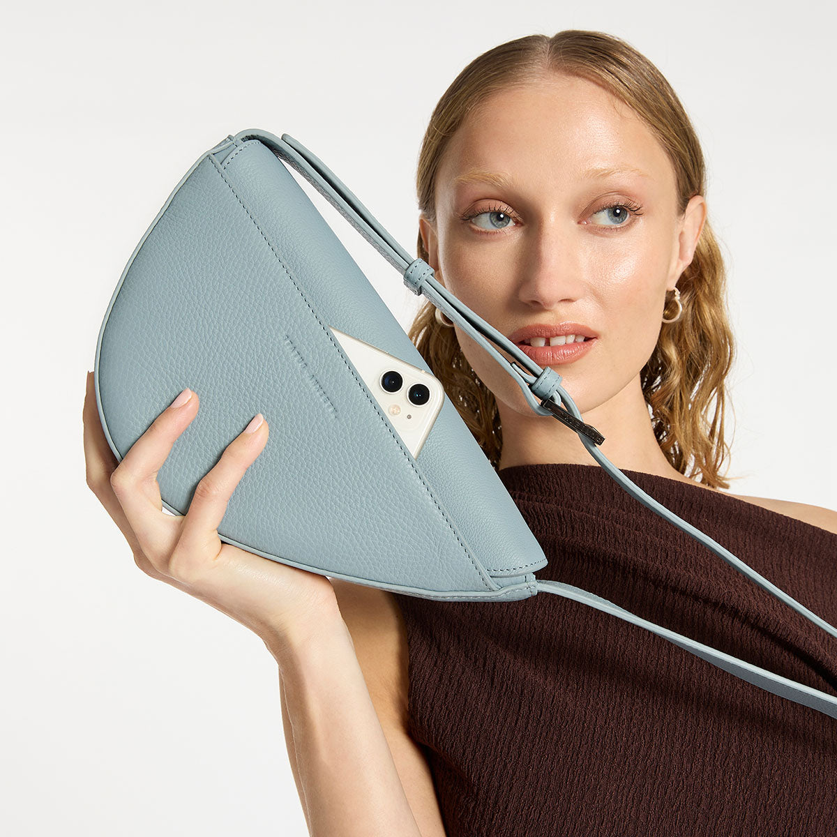 DescriptionEthereal; Subtle, beautiful, seeming to belong to another more spiritual world. With her delicate asymmetry 'Ethereal' will have passersby questioning her connections to the physical world. Structured and a little dressier, wear her crossbody by day and adjust the strap to use as a shoulder bag by night. Ethereal has enough space and compartments to throw all your essentials in, including outside back slider pocket, inside zipper pocket, card slots and lippy pocket.