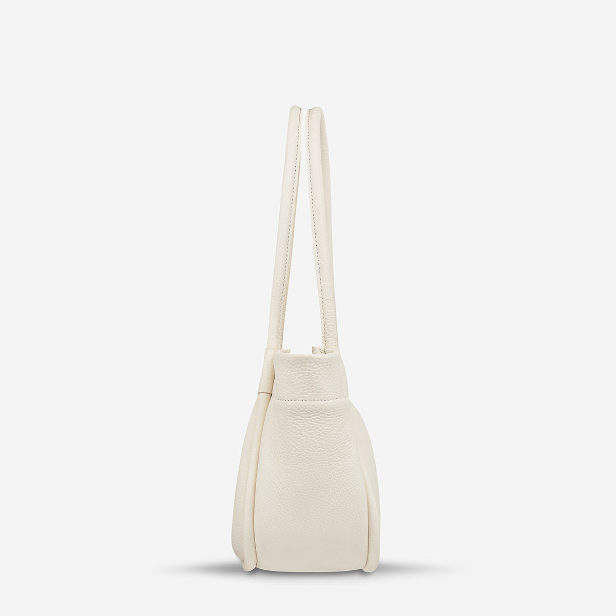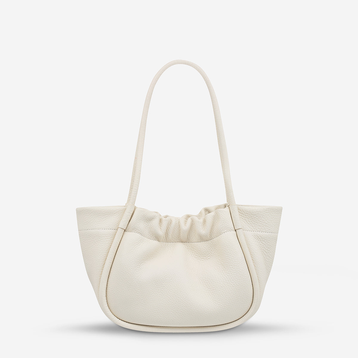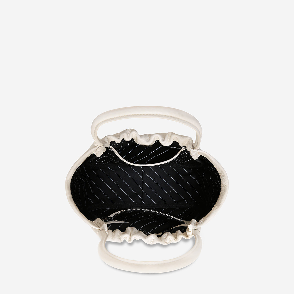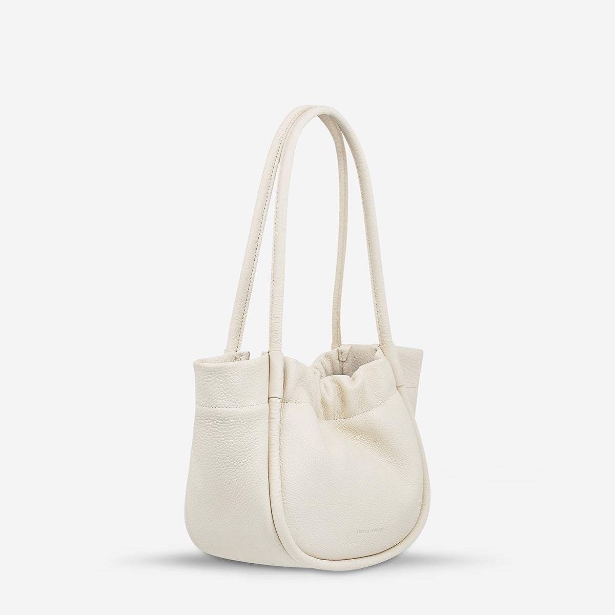 Invoking the universal subconscious desire for pleasure. 'Ordinary Pleasures' sits proud on its flat base and features long rope shoulder straps and a wide opening gathered top in which you can have the side gussets out, or in for a smaller rounded silhouette... fancy.