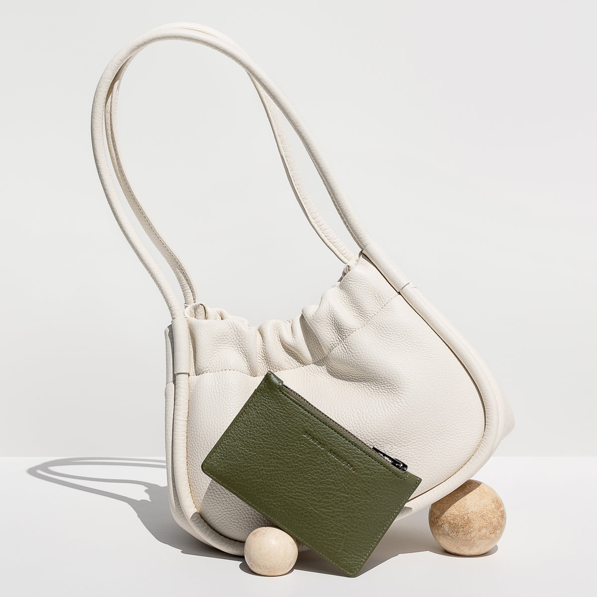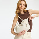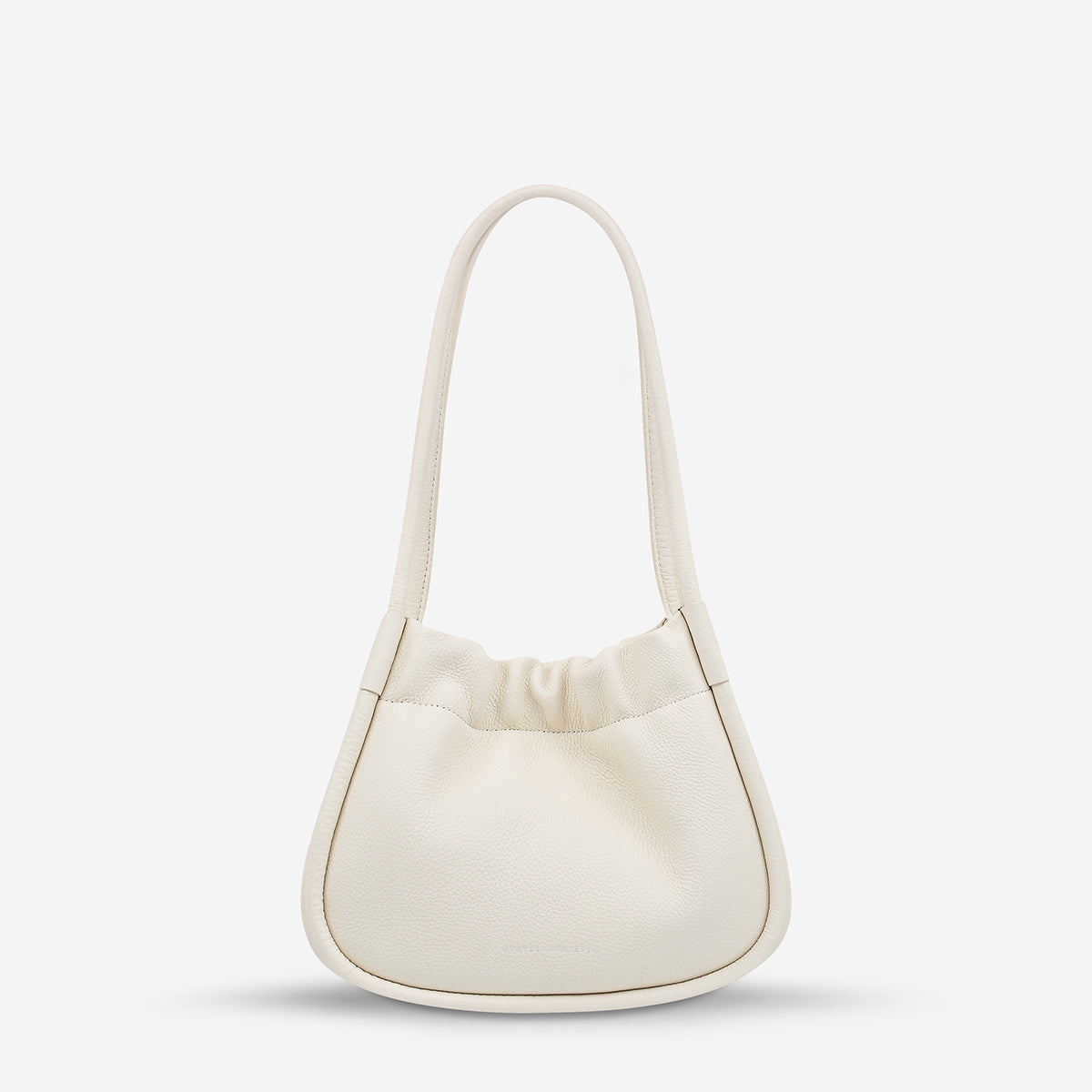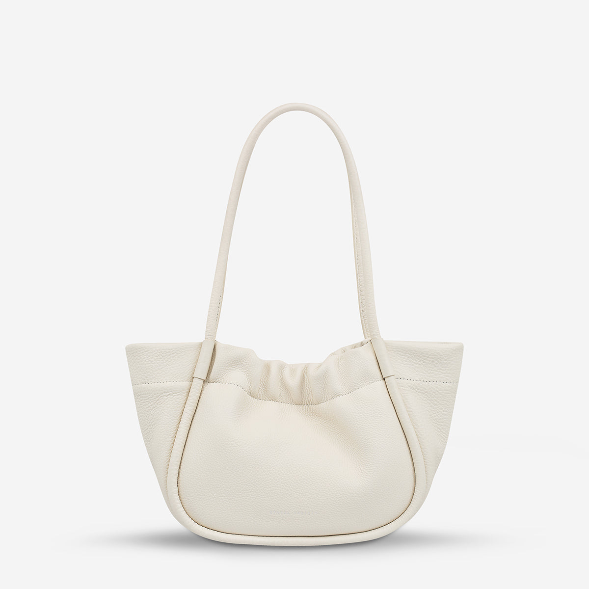 Invoking the universal subconscious desire for pleasure. 'Ordinary Pleasures' sits proud on its flat base and features long rope shoulder straps and a wide opening gathered top in which you can have the side gussets out, or in for a smaller rounded silhouette... fancy.