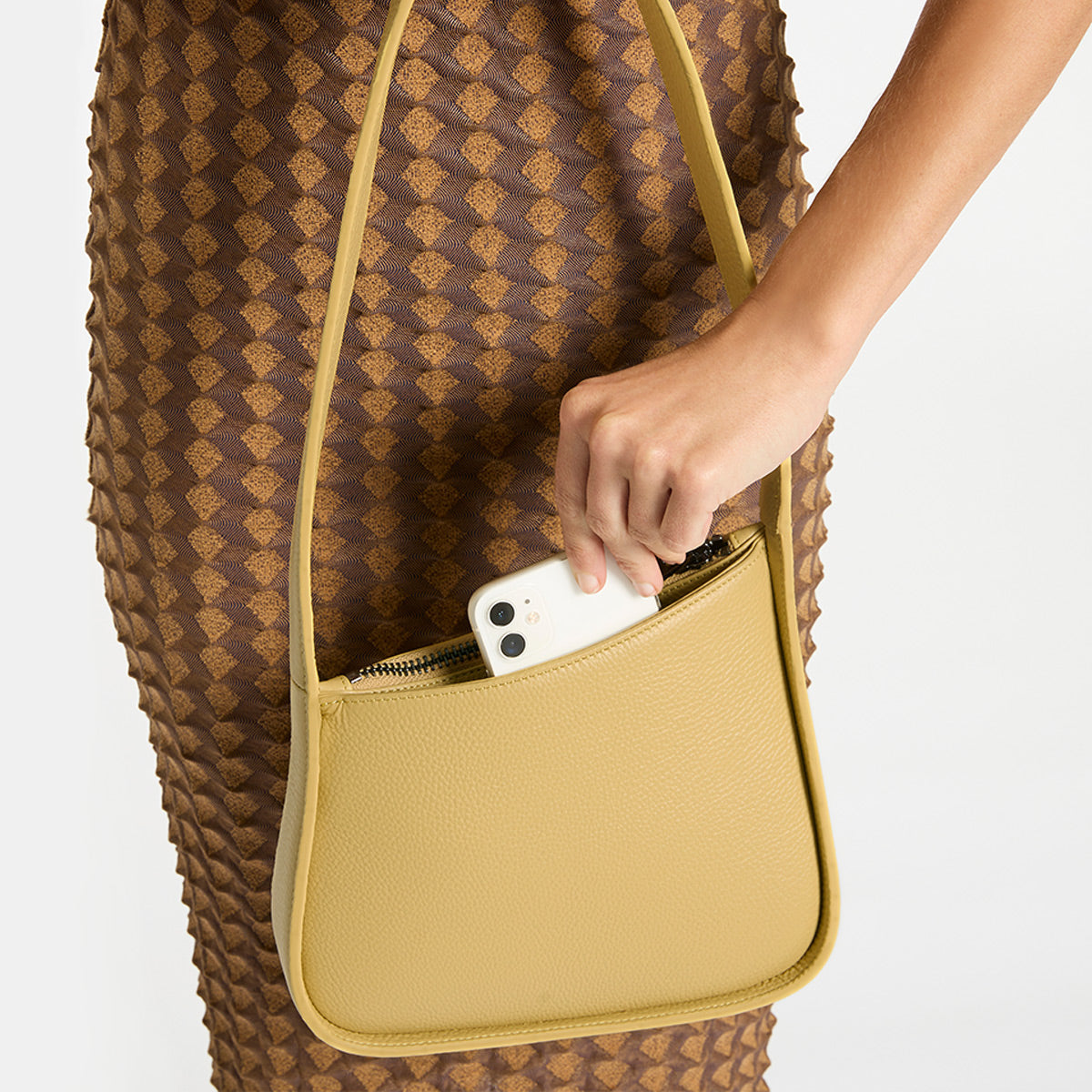 A remarkable happening, Phenomena invokes an air of sophistication with her organic silhouette. The sleek and uninterrupted shoulder strap, oversized branded zip closure, and structured body edging makes Phenomena a piece to complement any outfit and occasion.