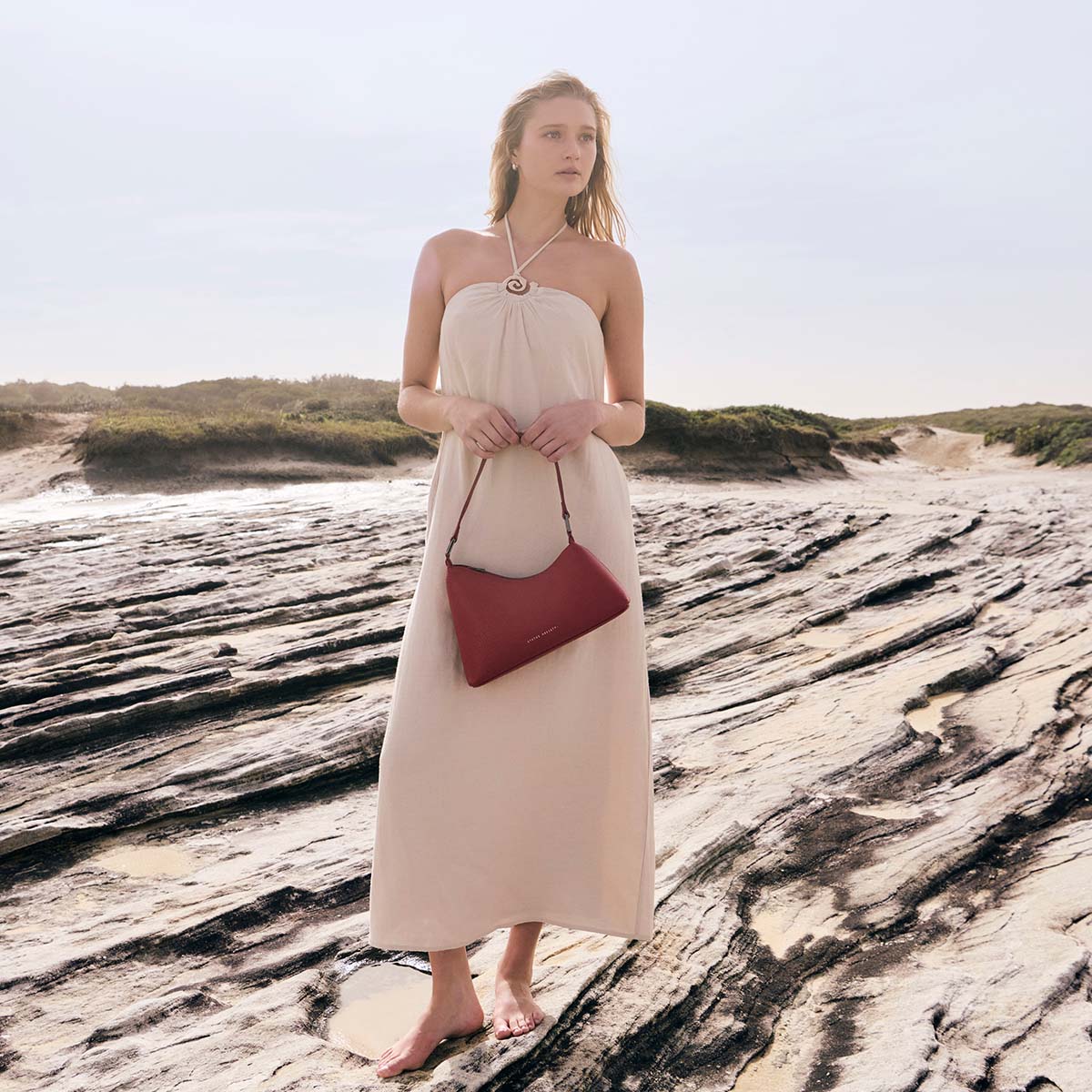 Scientific studies show that the majority of people are attracted to asymmetrical facial structures. Not shying away from her interesting and unique features, Reverie has a generous strap drop to sit comfortably under your arm and will gladly let you share the limelight she so enjoys.