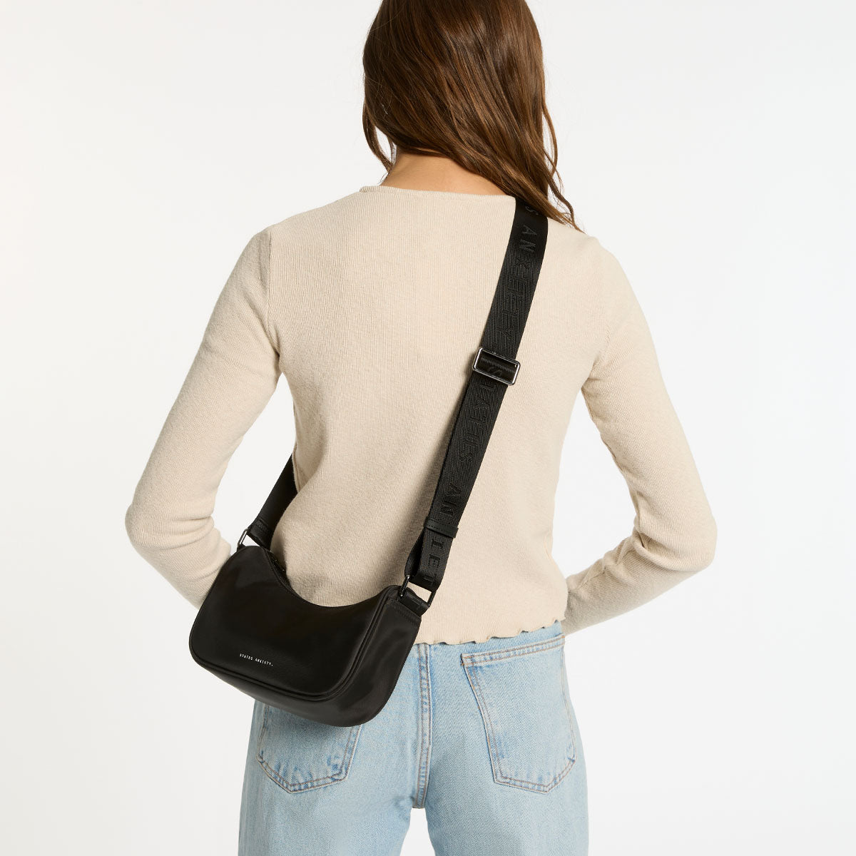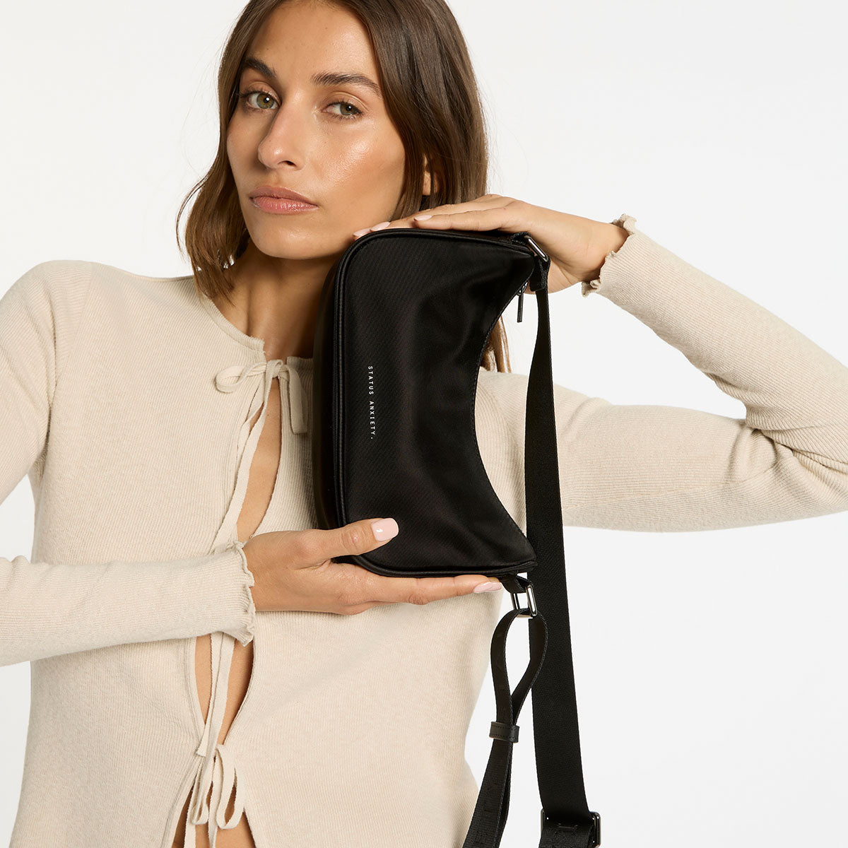 Say hi to Vida, our curvy crossbody. Made of premium reinforced recycled polyester to give it superior structure, and finished with our branded zippers and gunmetal hardware.