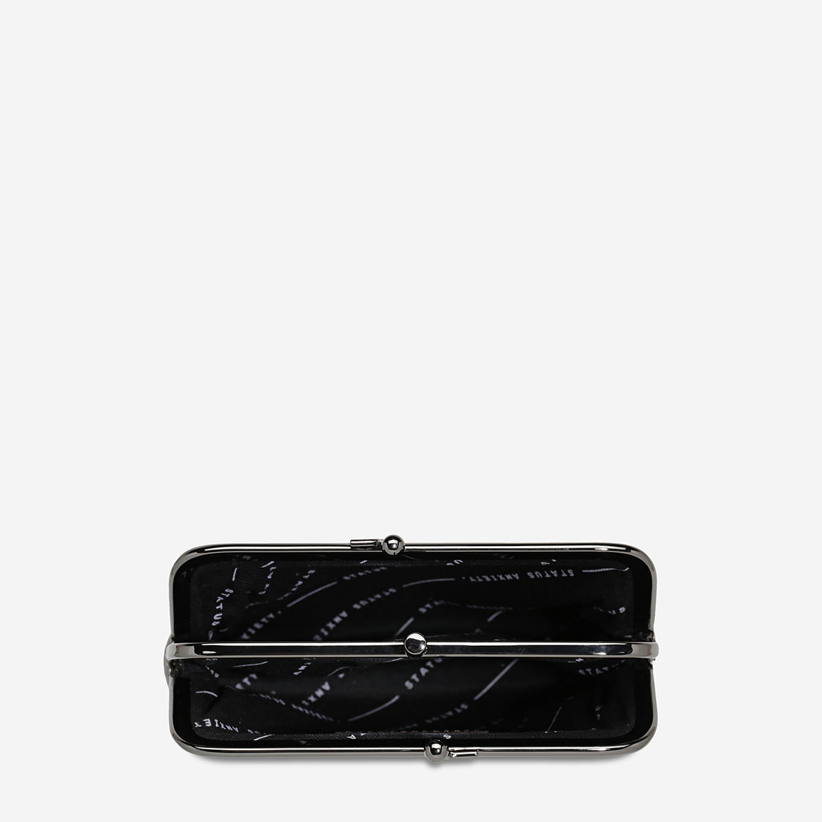 DescriptionIt was only a matter of time, wasn't it? Made for frivolous outings, the Volatile clasp frame purse is the new throw and go purse. Perfect for carrying cards, cash, lip gloss and the like.