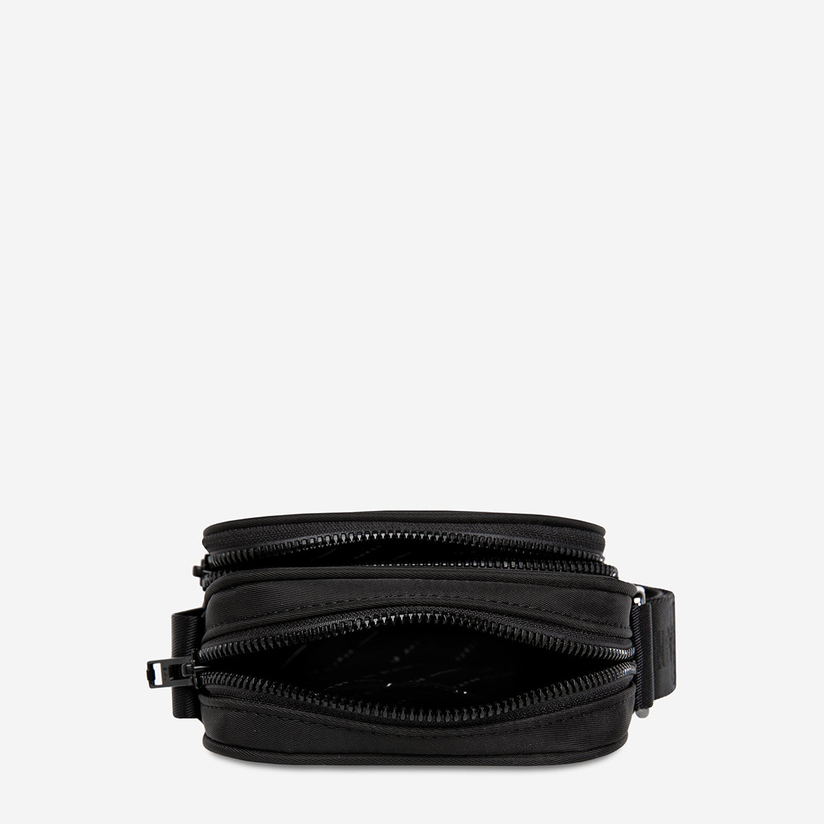 Compact and capable. Winnie is made of premium reinforced recycled polyester to give it superior structure, and is finished with our branded zippers and gunmetal hardware. Featuring a long adjustable webbed strap, dual zip compartments and back slider pocket for your phone.