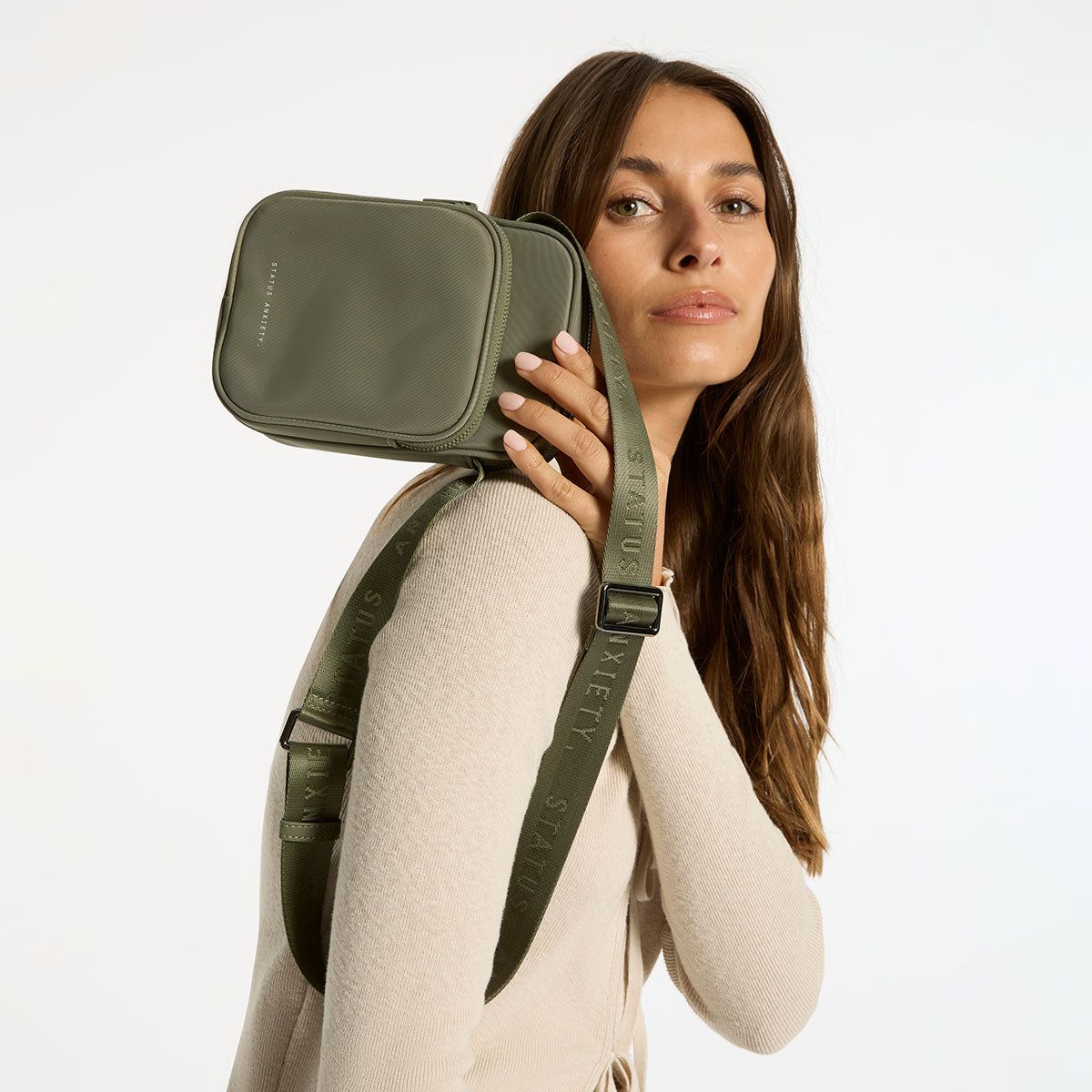 Compact and capable. Winnie is made of premium reinforced recycled polyester to give it superior structure, and is finished with our branded zippers and gunmetal hardware. Featuring a long adjustable webbed strap, dual zip compartments and back slider pocket for your phone.