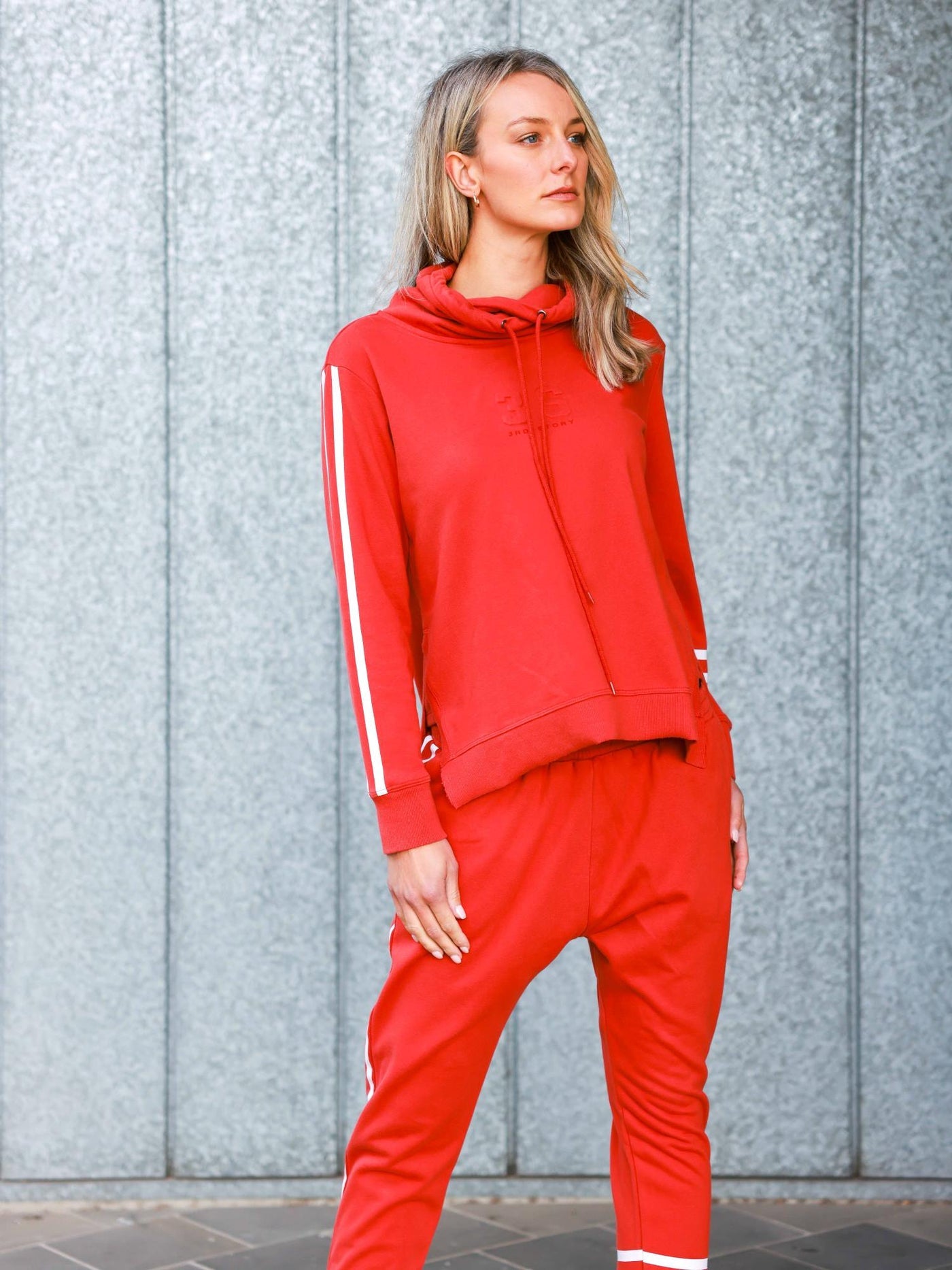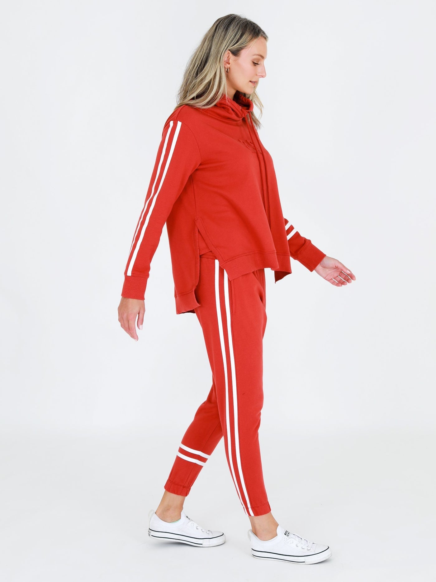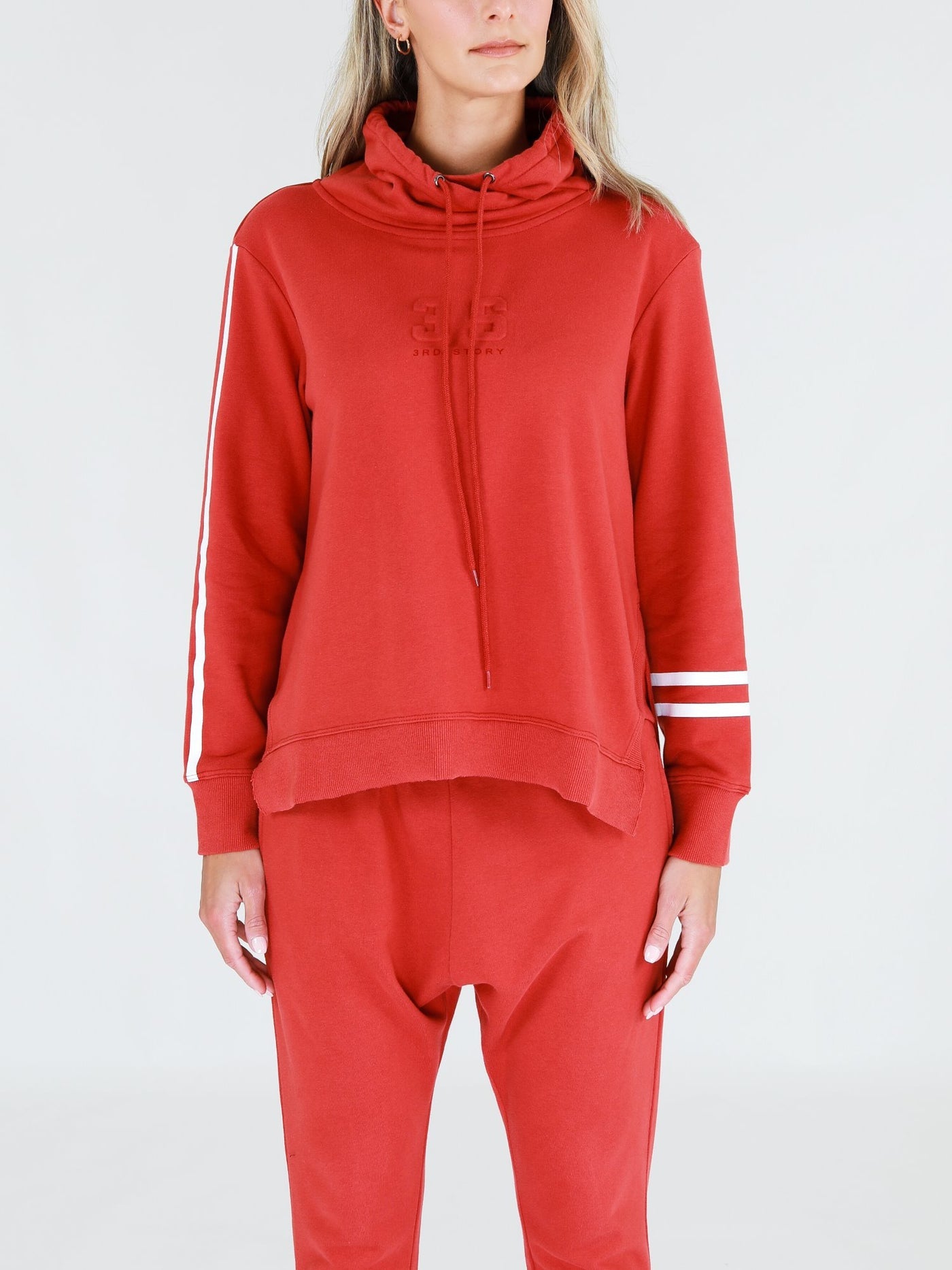 Charlise Two-Stripes Funnel Neck Sweatshirt - Lava