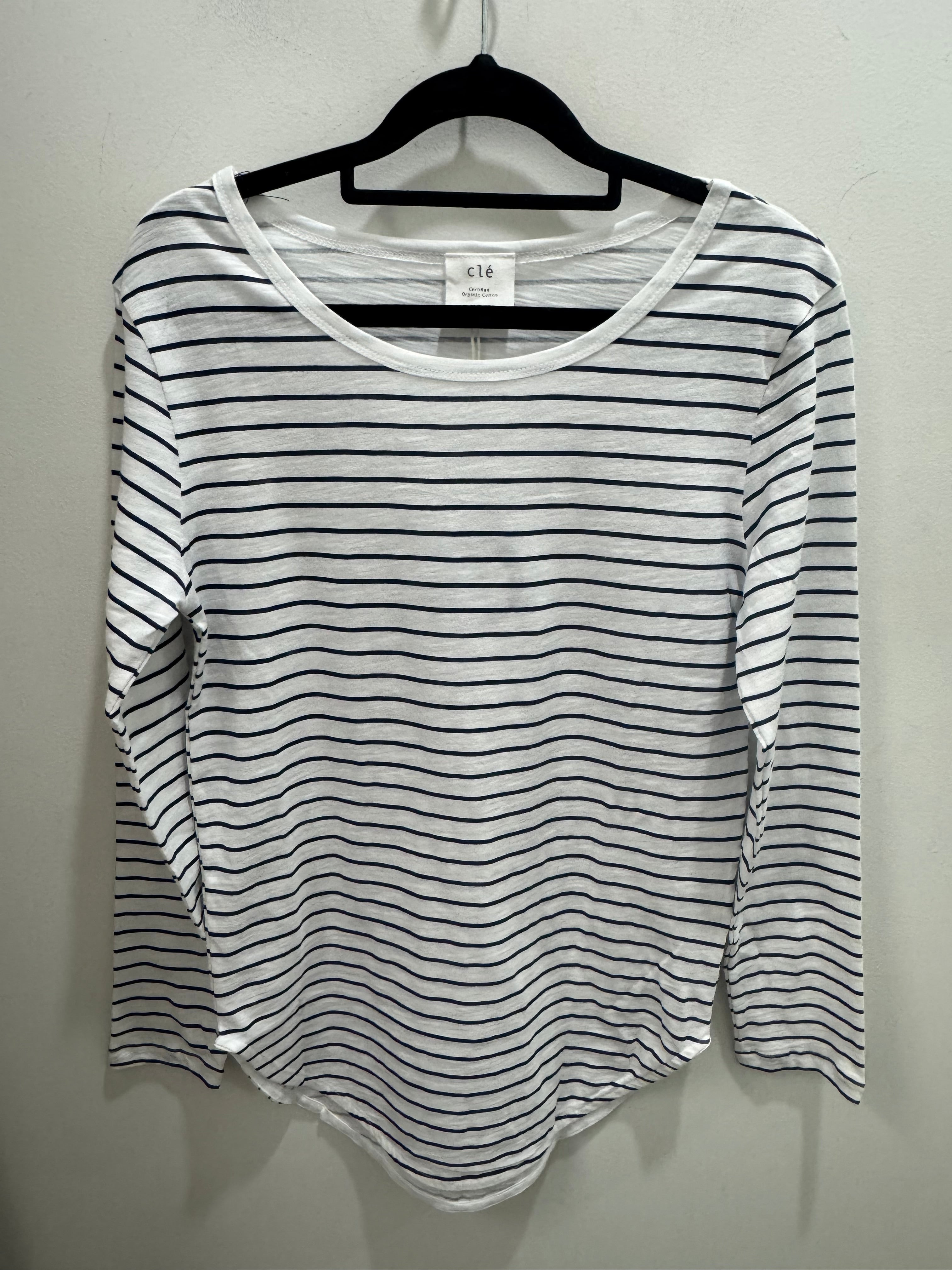 A long sleeved version of the Charlotte Tee - the Clé Layla Long Sleeve Tee features a simple, round neckline and a longer length front & back hem with flattering scooped sides.